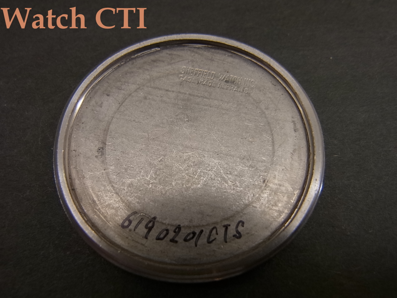 ダイヤルの「ウエッジフィールド」はペットネームとみるべきで、ケースバック内側には「シェフィールドウオッチINC」の刻印あり。このシェフィールドウオッチ。しばしばスポーツタイプのヴィンテージで見かけますが、たしかどれもダイヤルに違う「銘」が入っていた記憶があります。なんだか楽しいメーカーです(廉価版専門メーカーだったのでしょうか…..B級の愉しみに溢れます!)