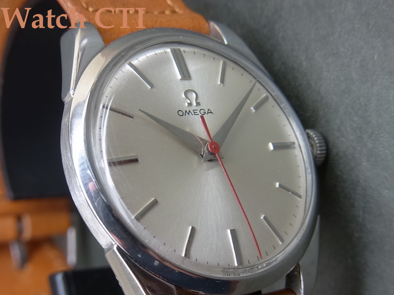 ☆シンプルこの上ないダイヤルに赤セコンドが効いてますね!ケースに少々ポリッシュが入っており輝いております….