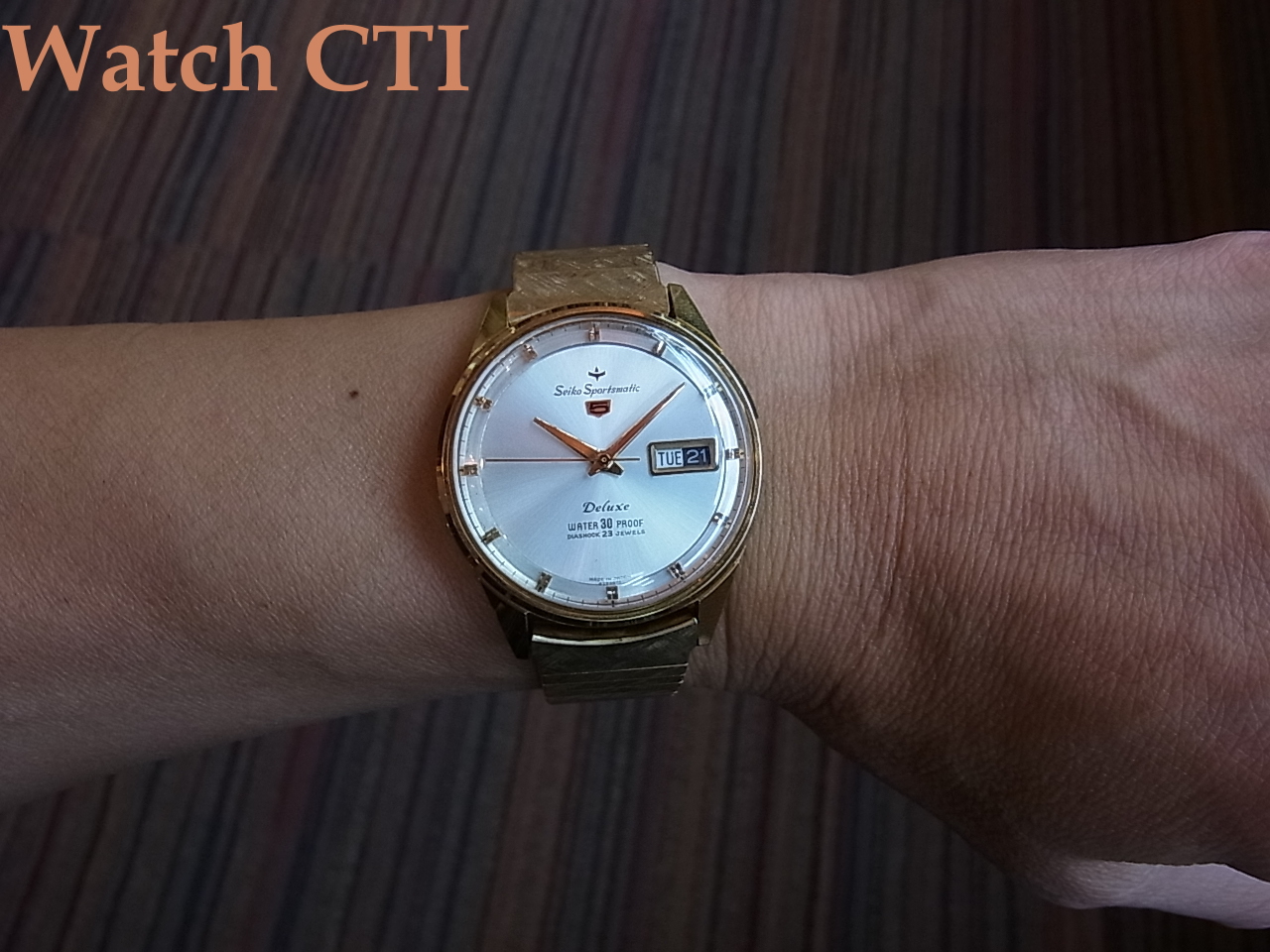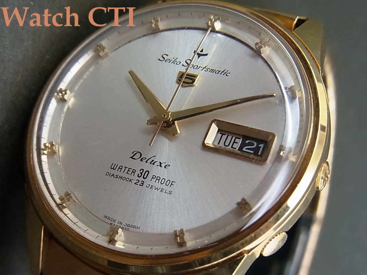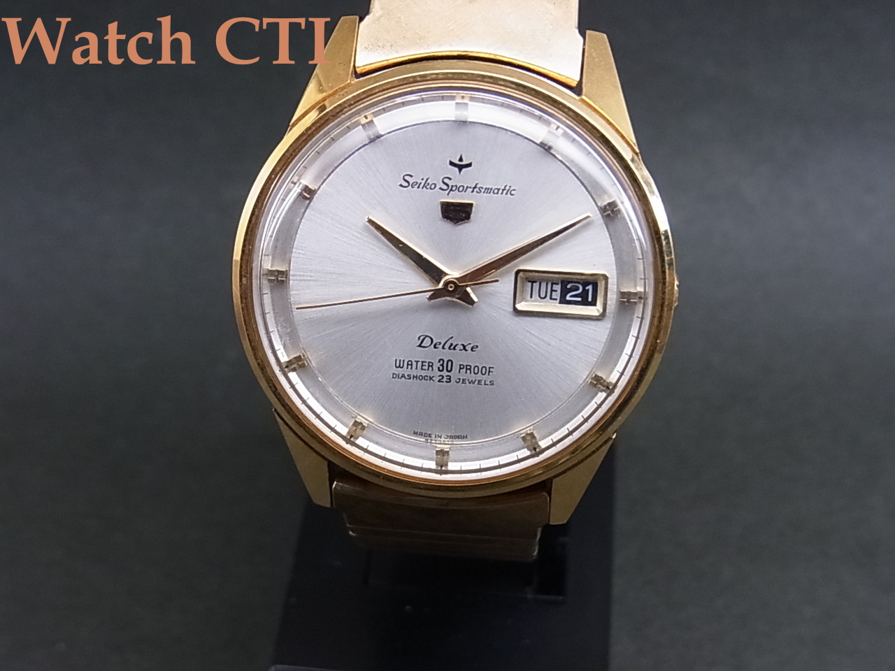 ブレスレットに銘は入りませんが、当時純正で装着していた物に間違いございません。あの頃の国産メーカー品はまだ自社銘をブレスに入れるところまで至っておらず、多くの無銘ブレスが装着されていました、この後すぐにクラスプ内側に何らかの銘や刻印が入る時代になりその後即バックル部分にエンボスされる現在見慣れた純正ブレスになります。紺れらの無銘ブレス時代の製品はむしろ希少なんですね。