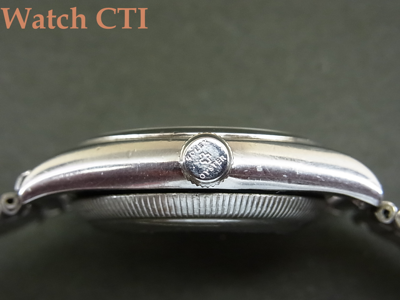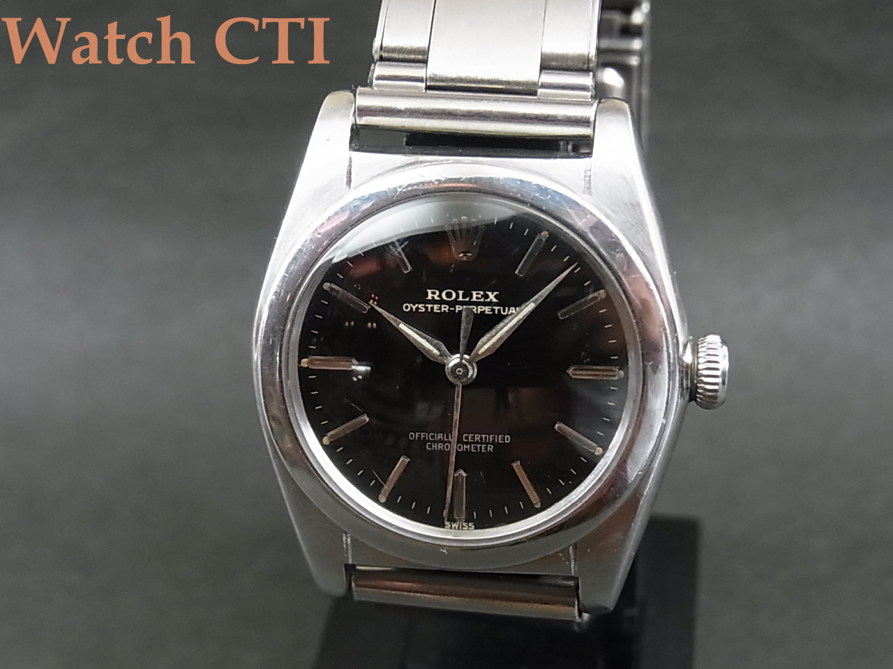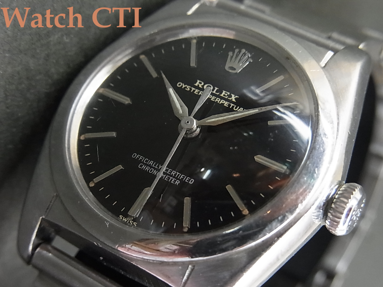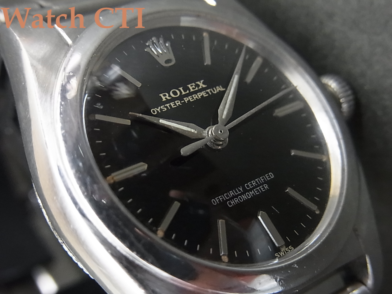 *ミラーブラックダイヤルは所謂ギルトで文字板の下地を浮き出させたレターリングとミニッツトラックです。(クロノメーター表記はシルバーのプリントですが、これが純正となります)このダイヤル自体はロレックスの純正替えダイヤルと推察され年式は50年代最後期ではないでしょうか。大きな瑕疵もなく艶もあり、表面的な擦れやヘアラインがある程度です。