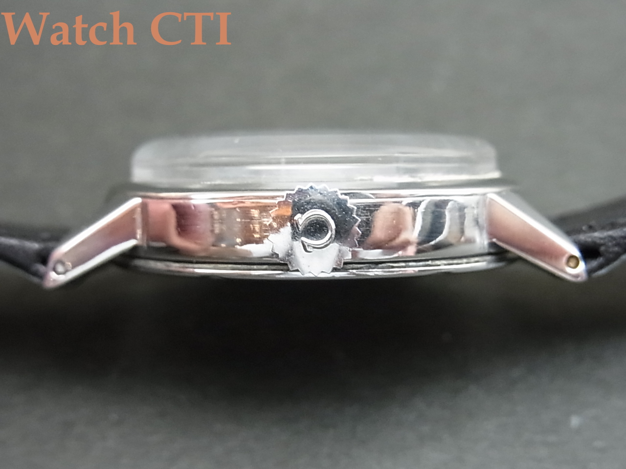 リューズは後年のオメガマーク入りで厚めで手巻しやすいギザの荒いタイプがついており、結構マッチしています。