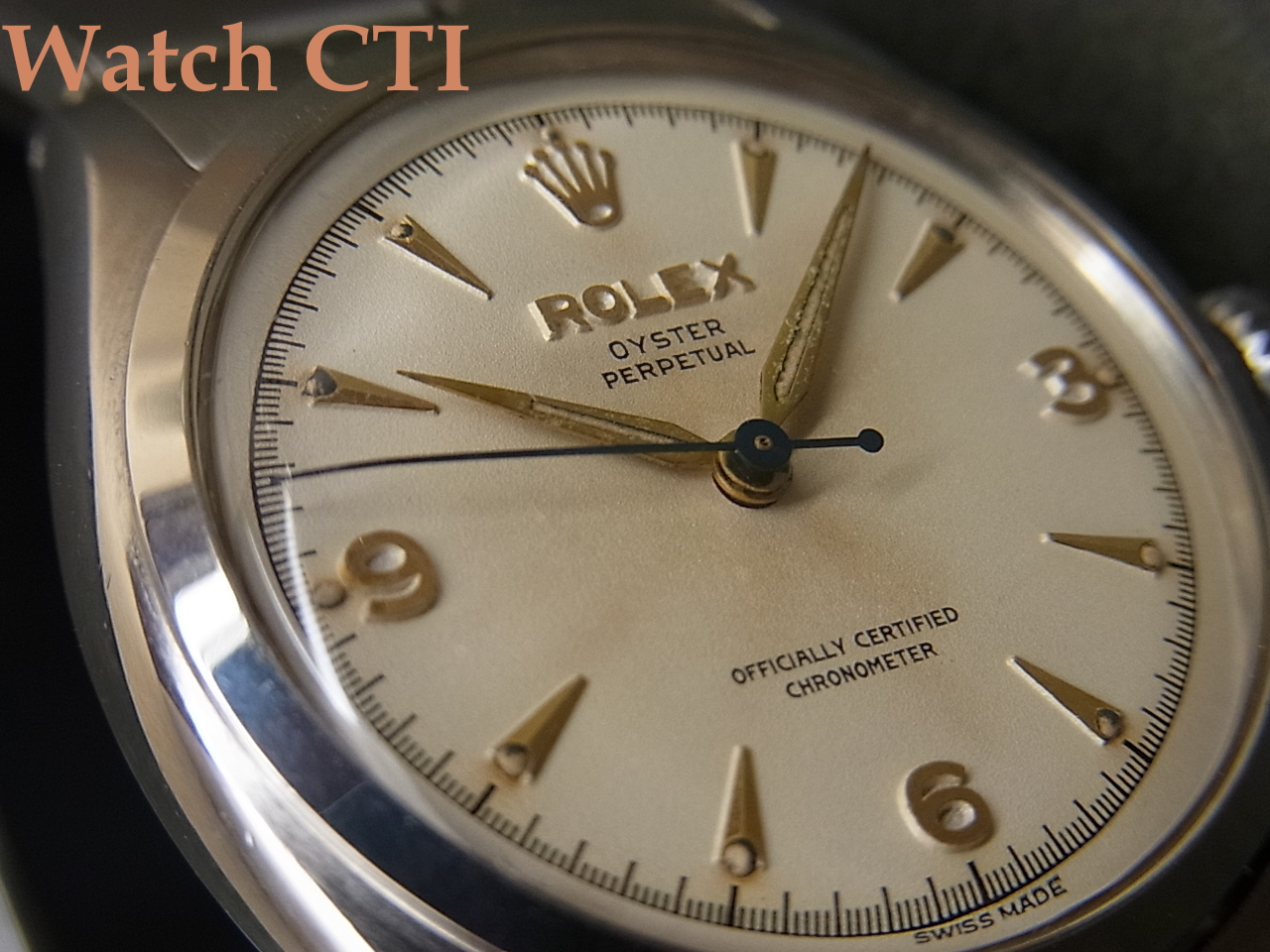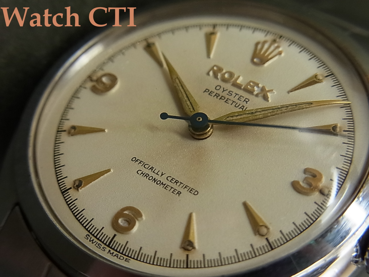 3・6・9がアラビア数字で入るいわゆる「エクスプローラーダイヤル」ですが、確かにこの意匠は視認性と言いデザイン性といい優れた機能性持ったダイヤルです。針はアルファ型に夜光入りで50年代スタンダードと言えるでしょう!