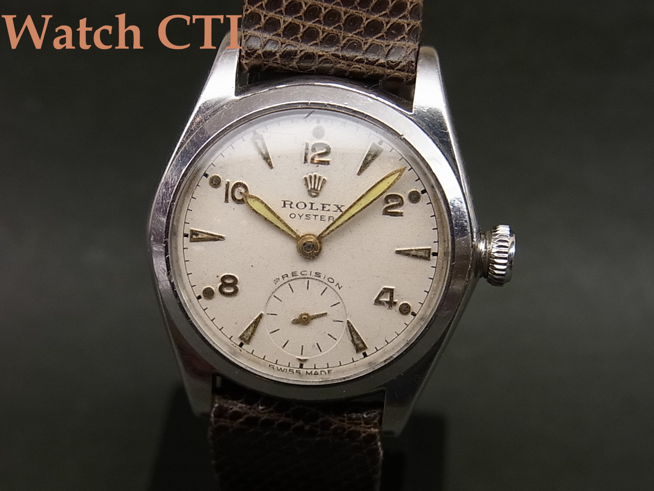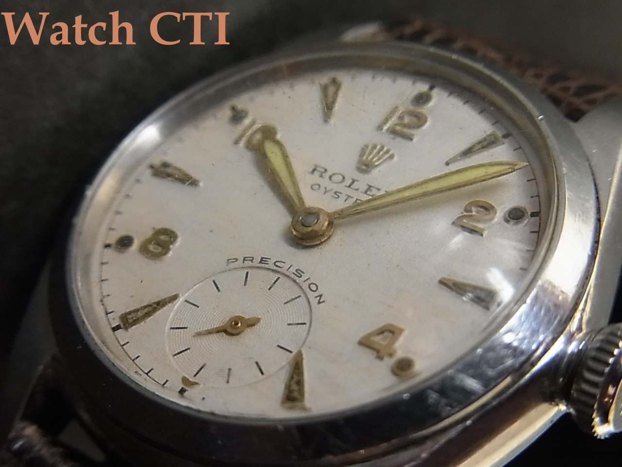 今回入荷のケースはケースバック・ケースミドル・ベゼルの3パートに分離できるケースでベゼルはミドルに圧入されています。中胴を使った4ピースも有名ですね!各パートに分離できる利点は、それら各パーツを個別に高精度製作できる点で、ワンピースで一塊のものを作るより圧倒的に切れのある立体感がでます。ま、ロレックスも後年40年代年代半ば以降にはコストの点からでしょう、2ピースがメインになりますが、50年代半ば以降は10気圧防水にするため再度3ピース構造に戻る当たりはさすがでした!!