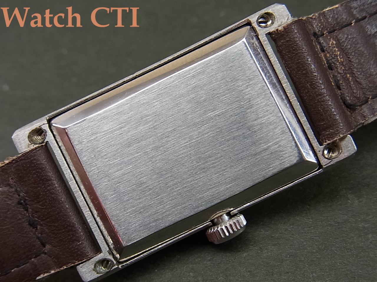 ケースは程よいサイズのこれぞレクタンギュラー!そしてケースバックのラグ付け根から4つのイモネジでケーストップに圧着させる防湿構造!