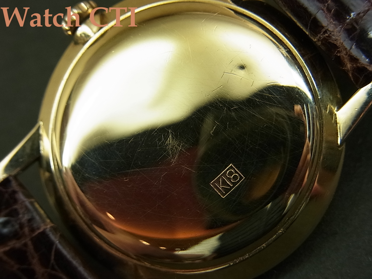 ◎非防水ケースゆえの宿命で経年変化により文字板にポツポツと染みが出ております。湿気の入り込みは如何ともしがたい問題であったためにこれでもかなり「良い方」な状態を保ったオリジナル品ですね。更に、金無垢ケースはその金属の柔らかさゆえに、ケースラグがゆがむ品が大多数…..今回の品は目につく歪みありません!これ非常に重要なポイントです。