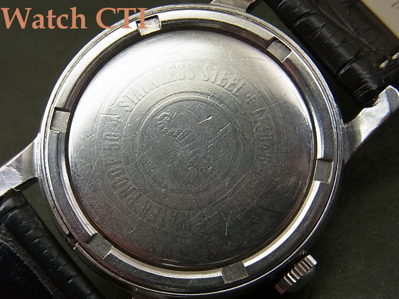 このウオータープルーフケースの方式は、ネジ切りしたリングでつば付きの裏蓋を締め込みOリングに圧着させる方式で、スクリューバック式の2ピースバージョンと考えられます。スイス製でもたまに見かける結構機能性の高い方式でした!