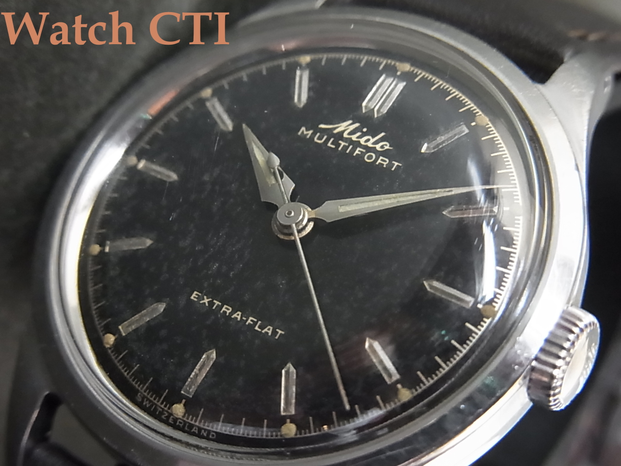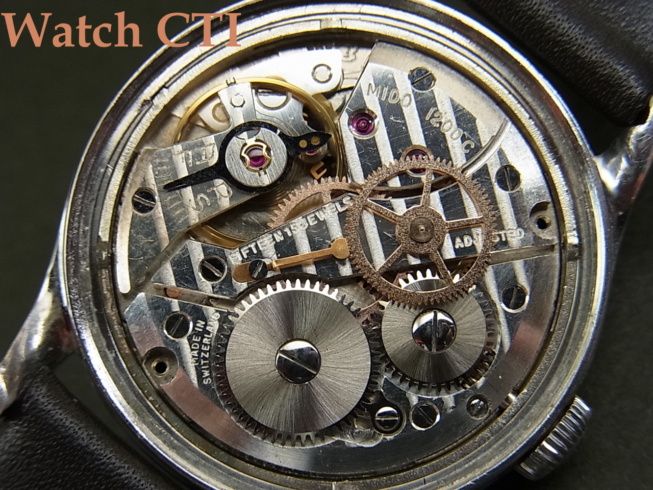 ダイヤル表面のクリア層がやられやすいのもギルト一般によく見られますが、この品もごたぶんに漏れずで画像から確認頂ける通り白い細かな曇りが多く見られますが、遠目には気づきずらい経年変化です。画像はコントラストが強調されがちです。肉眼で見た際には個別の曇りはそれほど気になりませんよ!