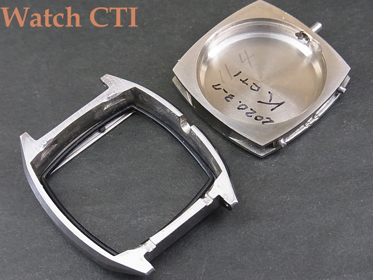 *セイコーの角型系自動巻に多く採用された、おそらくは相当に苦心して「角型の防水対応ケース」を考案して出来上がったケースでしょうが、ほんとにまあ「面白いことをするな…」と言う構造のケースです。