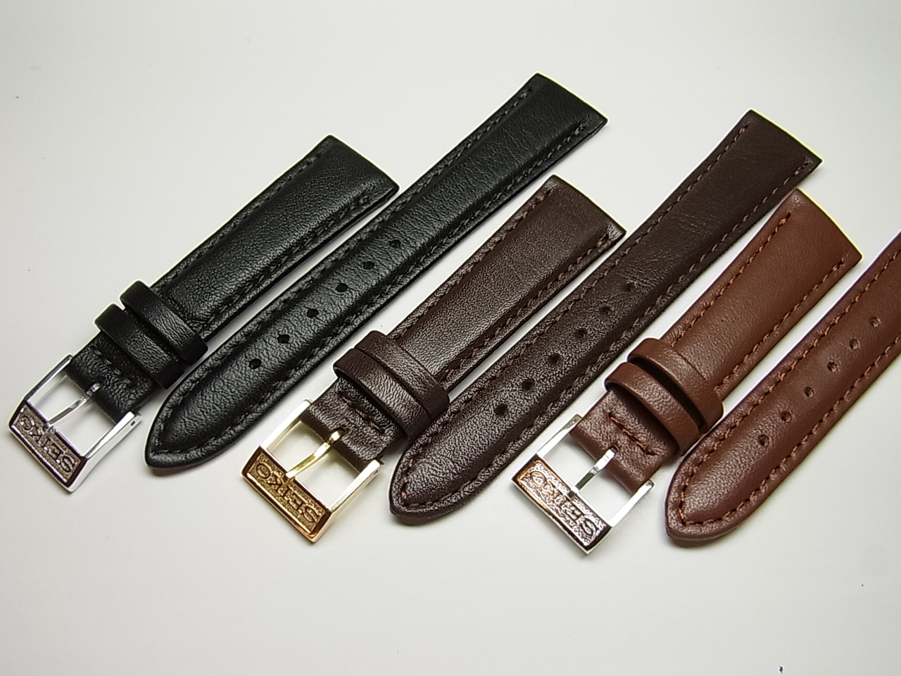 尾錠は1960-70年代頃の未使用品です ストラップはミモザ製ベビーカーフ19mm幅でアンティーク時計に合う柔らかい風合いの素材です。色は画像左から黒・こげ茶・茶色の3色展開です。