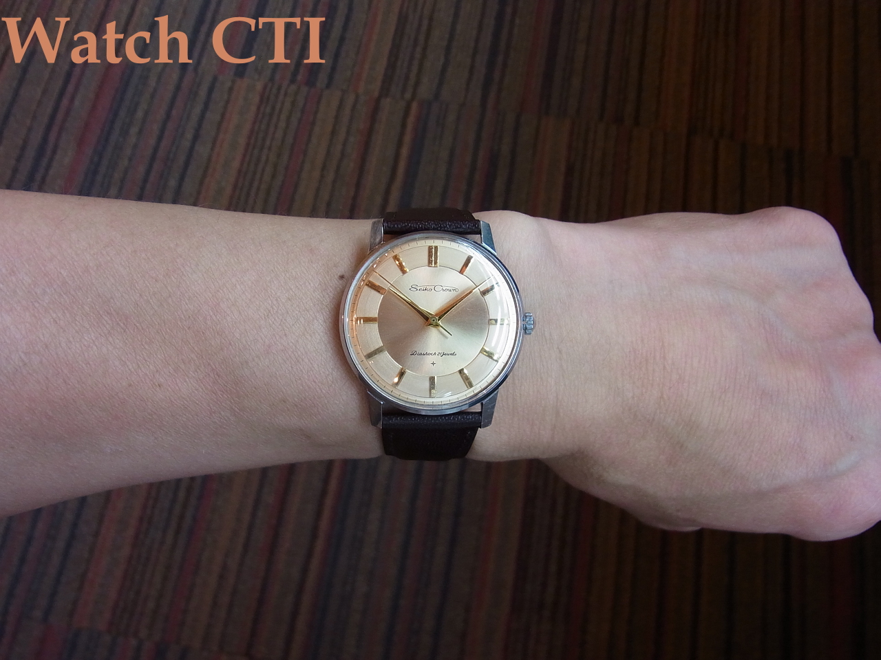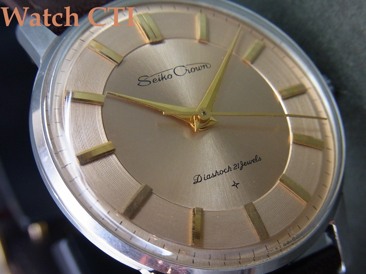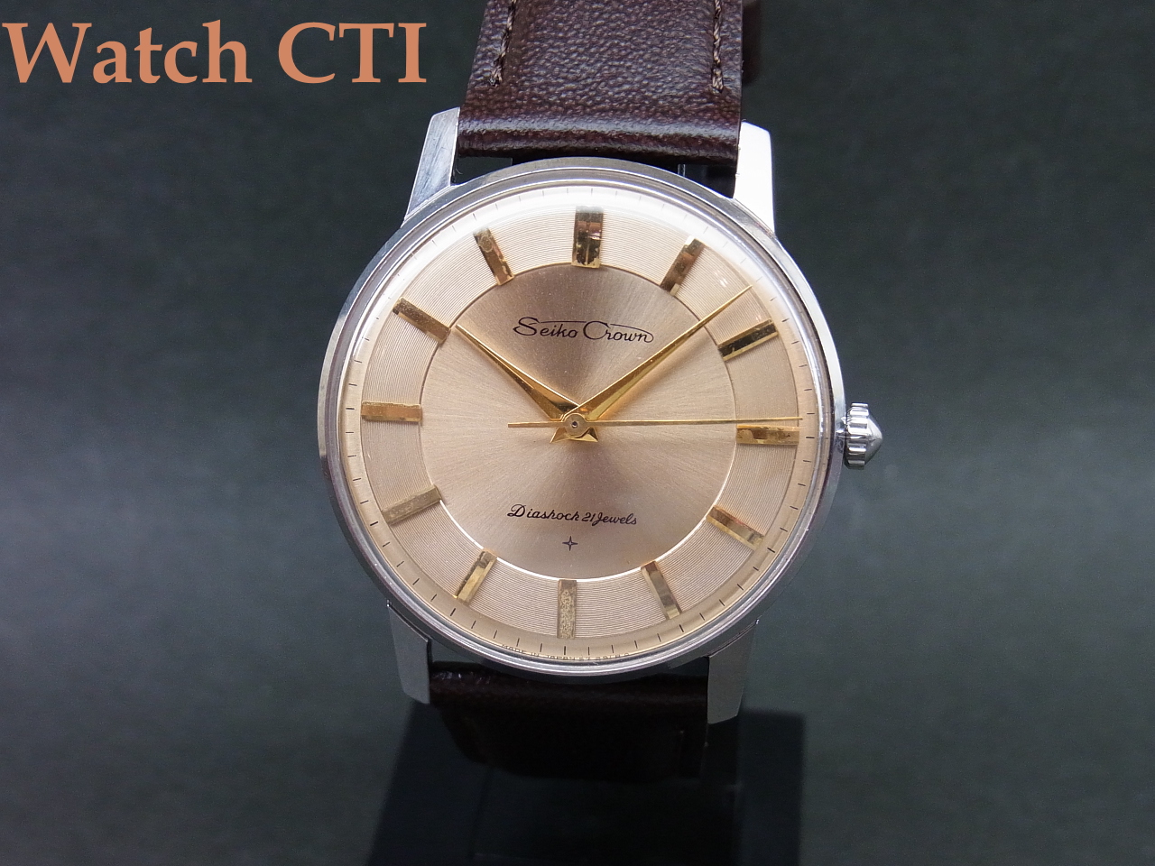 ☆カパー(銅)カラーですが、ピンクに見えてきます…..クラウンとしては結構レアな文字板です!