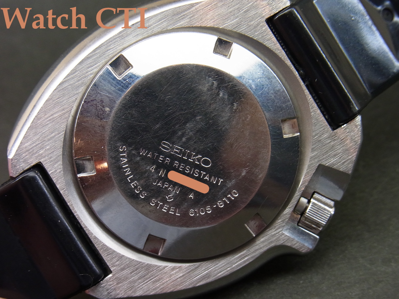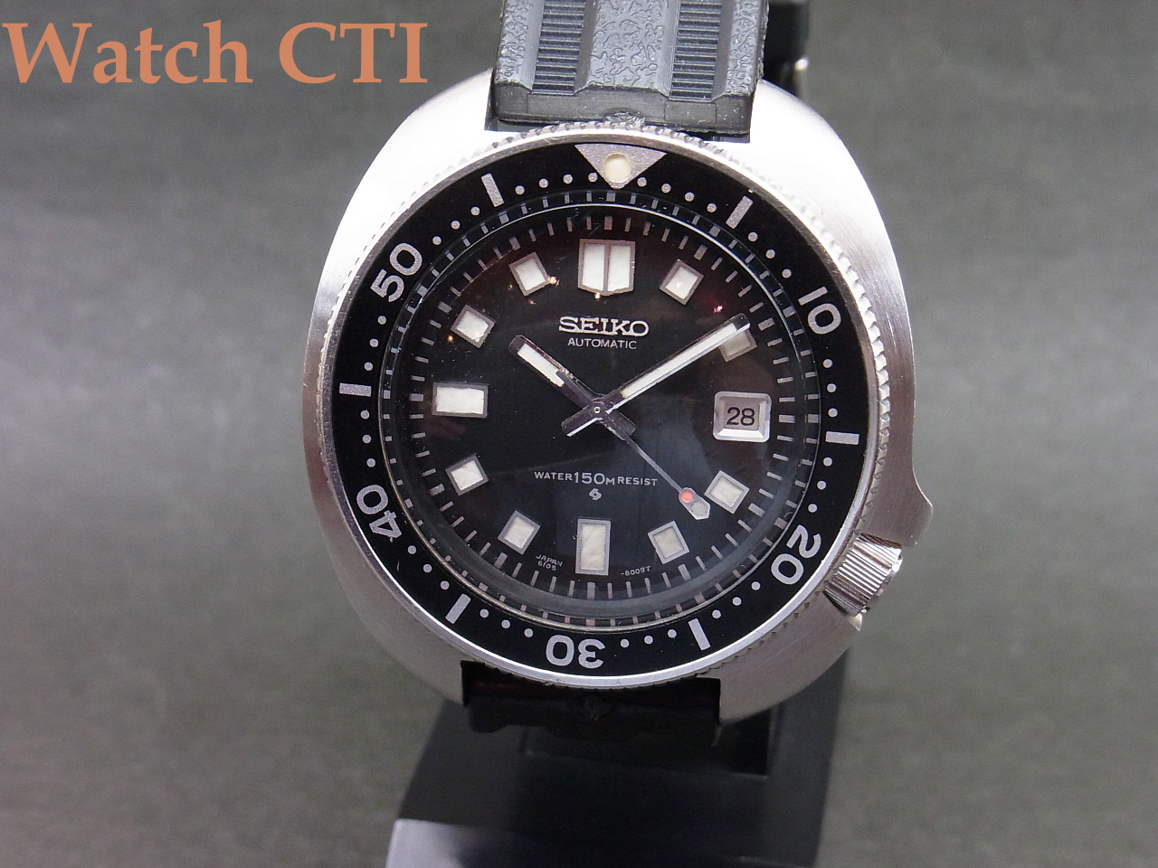 *付属のベルトはやはり海外で作られたオリジナルタイプのレプリカです。現行セイコーの19ミリサイズのダイバー用ではちょっと雰囲気が出ないのでこちらを付けておきました!