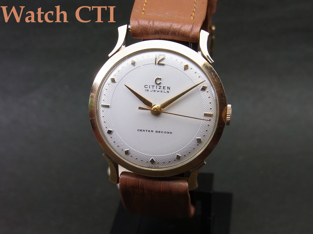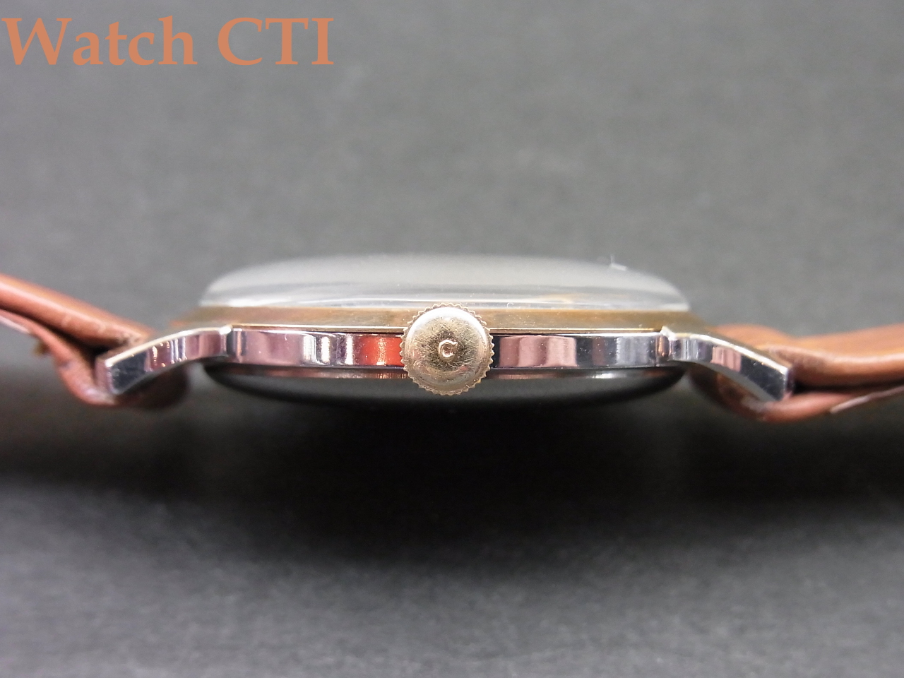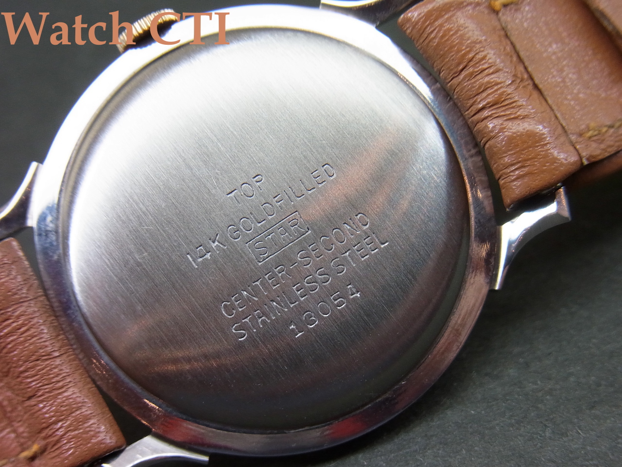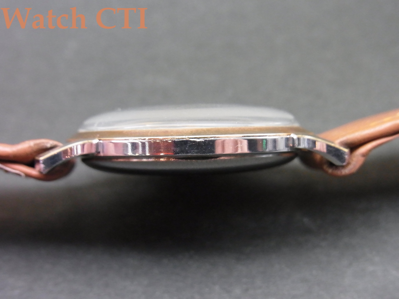 この現品!ほんとに「上側」だけなんです。つまり、ベゼルとケースラグの上面のみに厚い14金の板を張り込んでいて