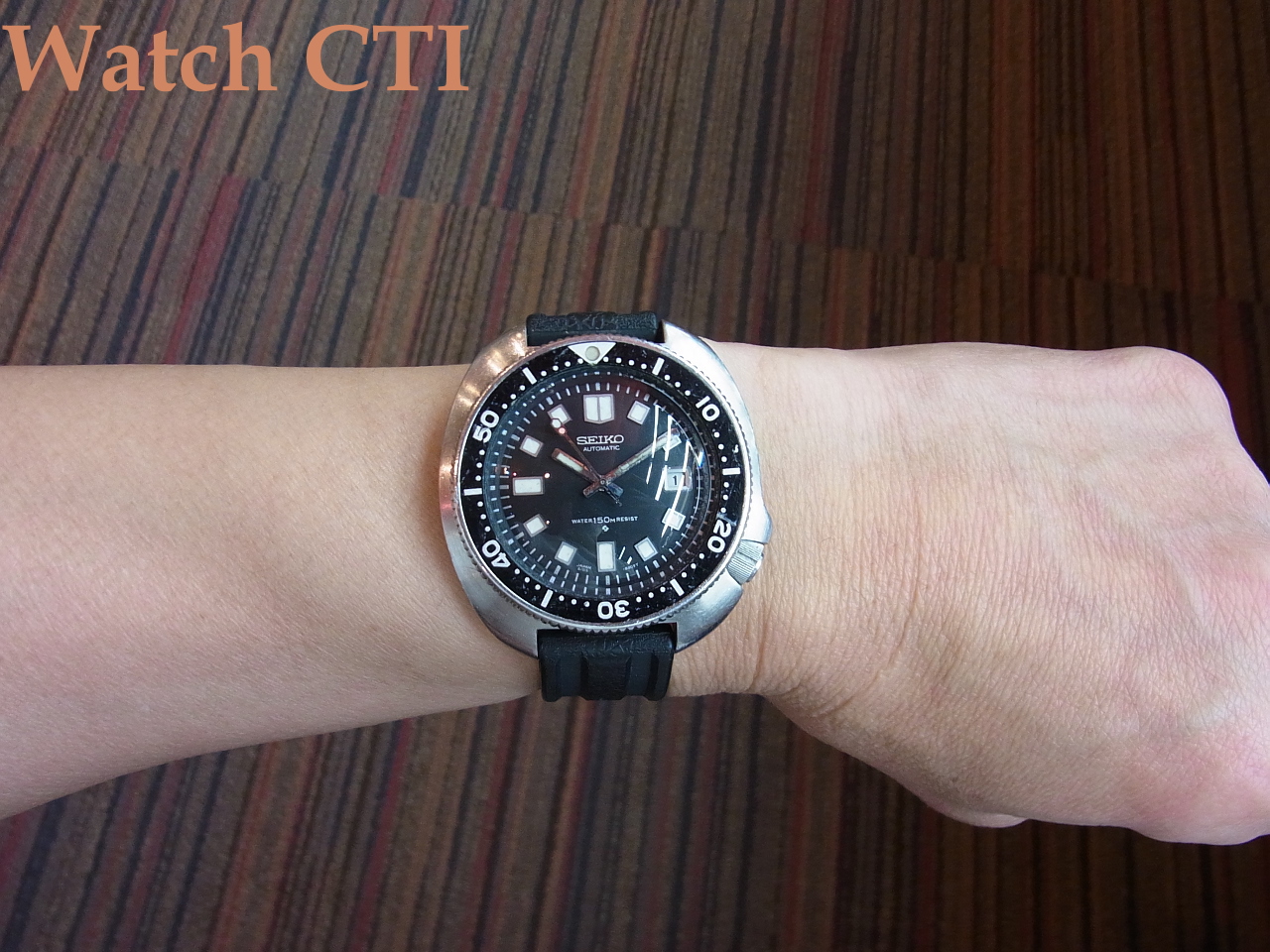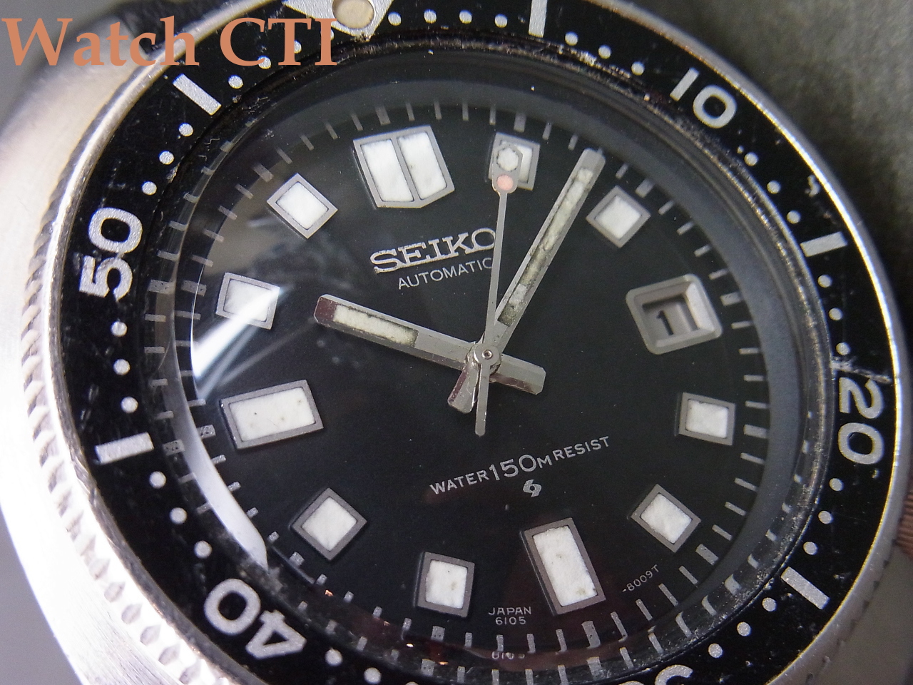 が、現品。まずまずでしょう。長短針の夜光がちょっと惜しいかな……その他ケースもベゼルも良い感じです。