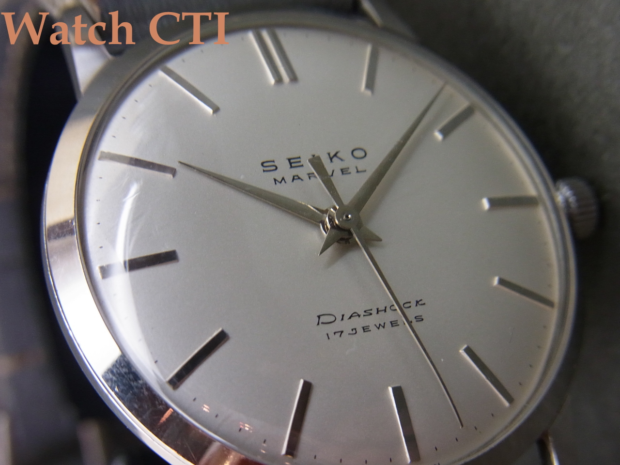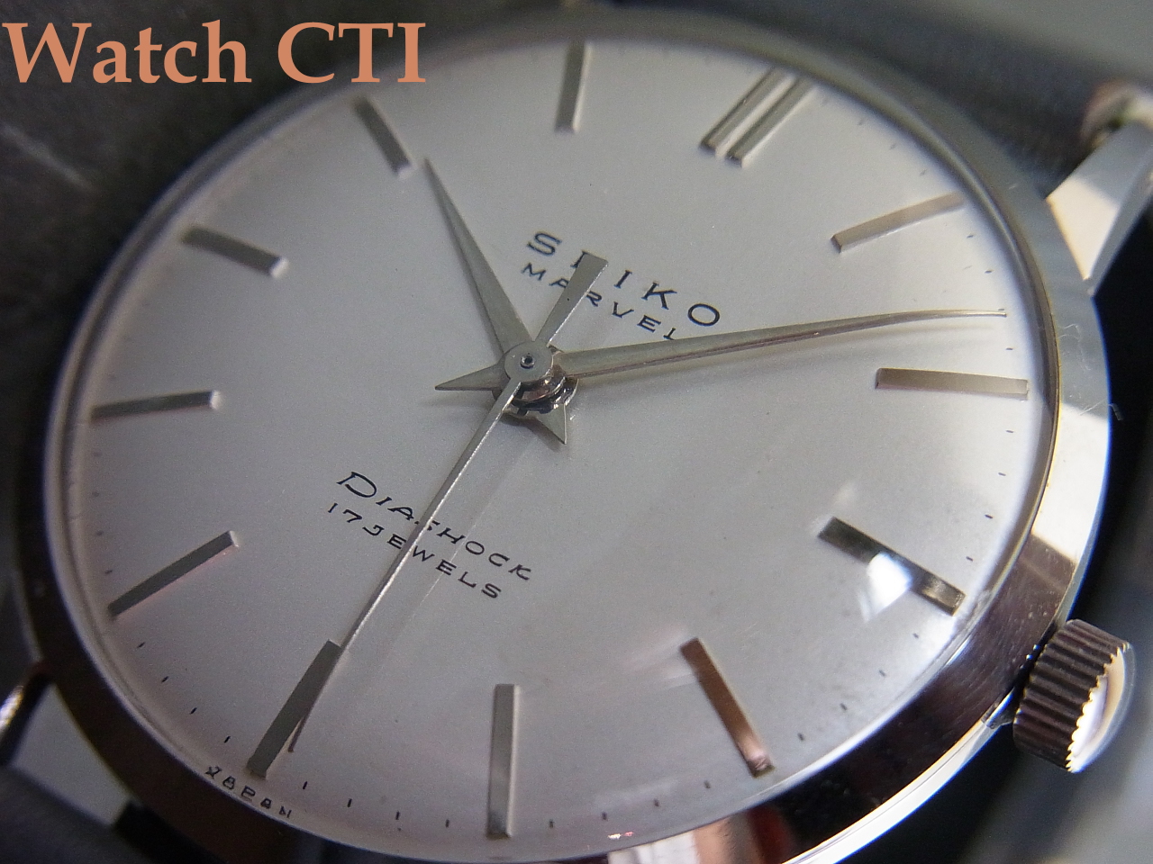 それから、文字板ですが…..SEIKOの銘の上、12時との間が妙に隙間が空いてるように感じますね….元々Sマーク入りでデザインされた文字板をSマークなしにして、この顕彰用仕様としてオーダーを受けていたのかもしれませんね!