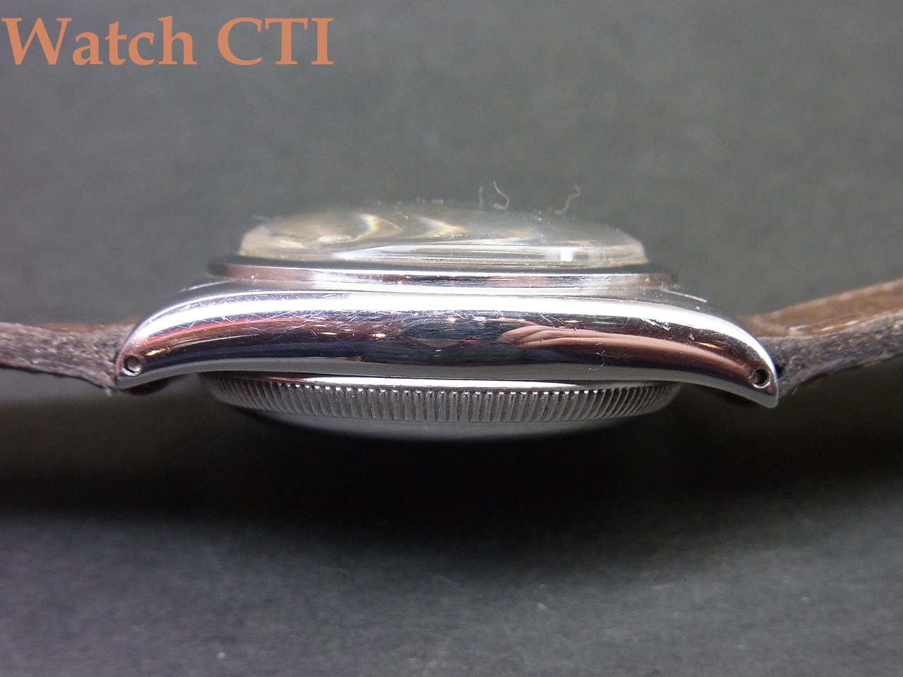 ☆ダイヤルの飛びアラビックの間を二等辺三角形が(まァ”くさび”ですが)埋める様が何とも見ていて愉しい一本です!ここが何でもない”バー”仕様のダイヤルが多いですが、こちらの方が現存数は明らかに少ないですし、視覚的にほんと不思議と楽しめますよ!