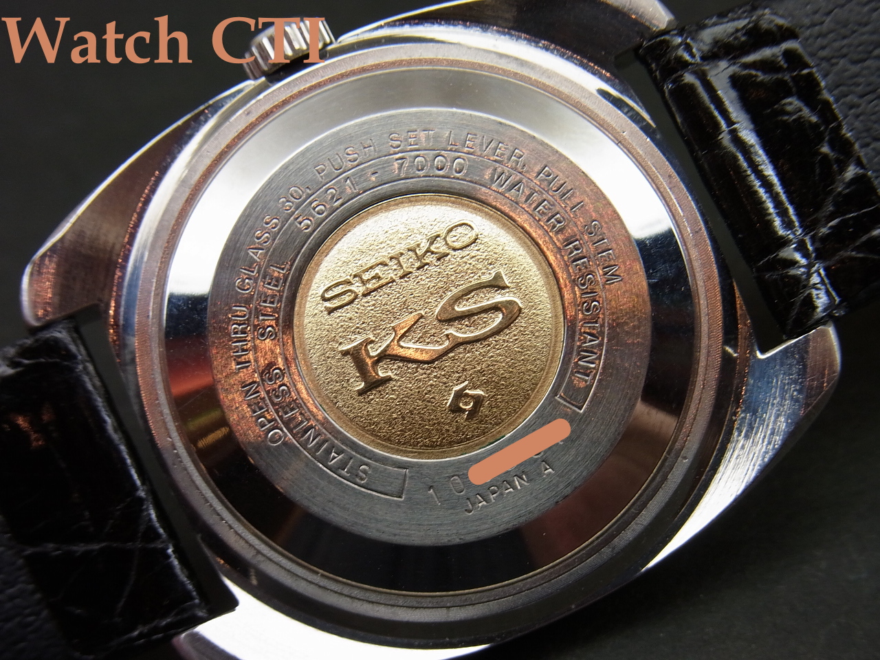 *ただし、純正の革ベルトですが、裏面が樹脂系塗料で仕上げられていて経年劣化でバリバリになってしまします。これはもうほぼ100%の個体でデッドストックで出てきても劣化してますので致し方なしですね….現行セイコー製で当時とほぼ同様なサイドワニの新品を取り付けて、そこに純正の15ミリサイズバックルを移植してあります!