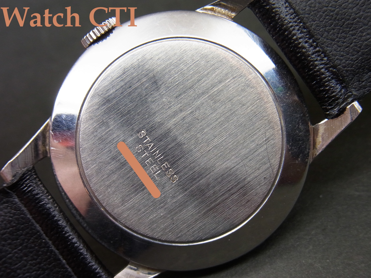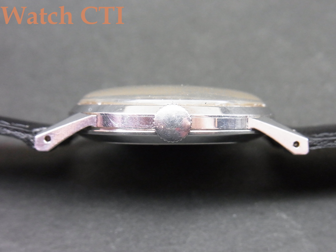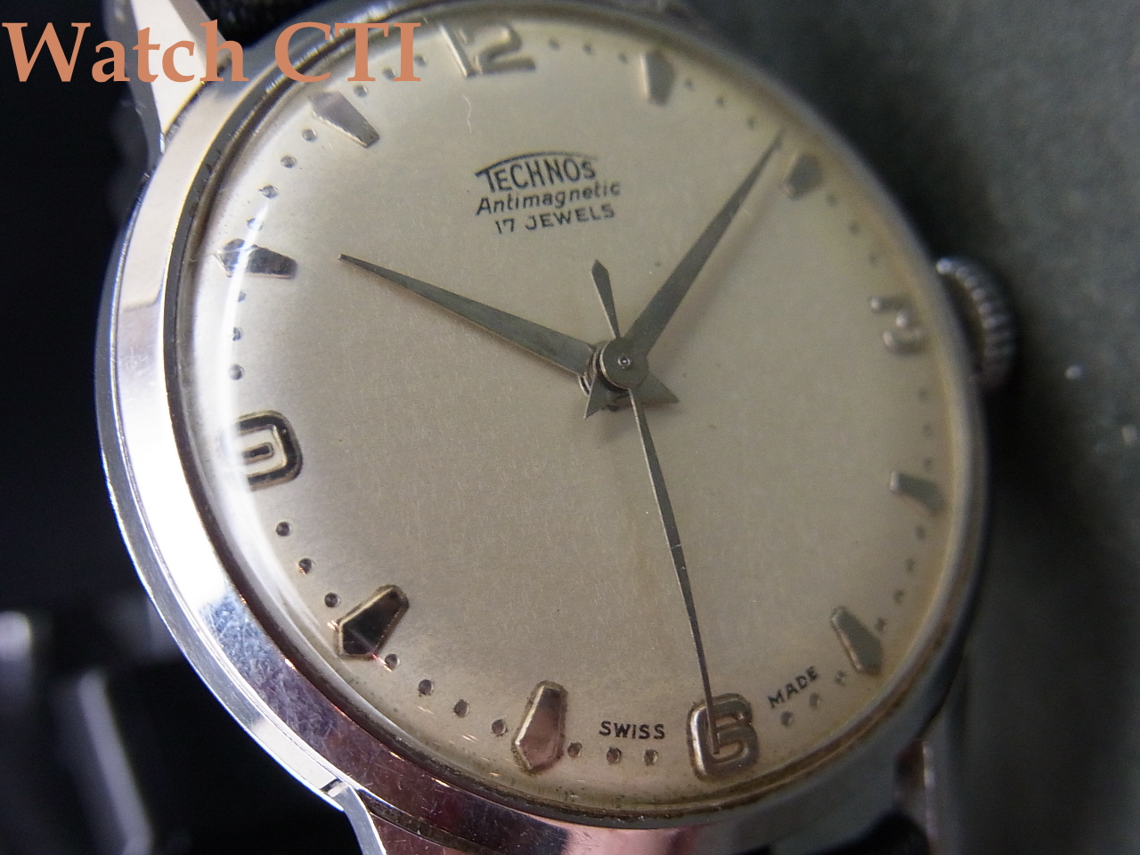 ケースにはテクノスの銘は入っておりませんので後年に入れ替えされている可能性はございます。形状はしっかり当時のものでマッチしており、またそれなりに使い込まれていますので銘無しケースで販売されたかもしれません….。
