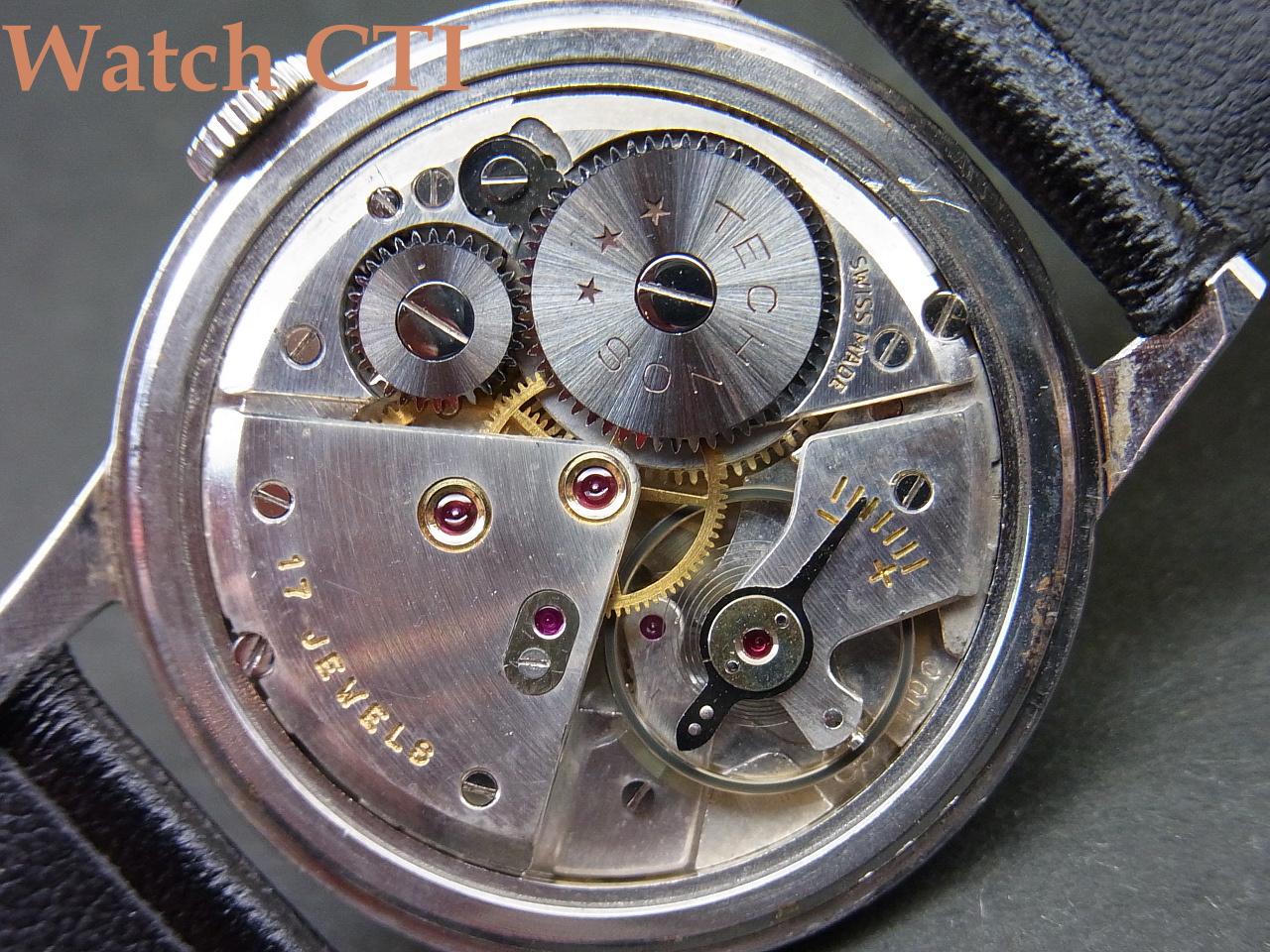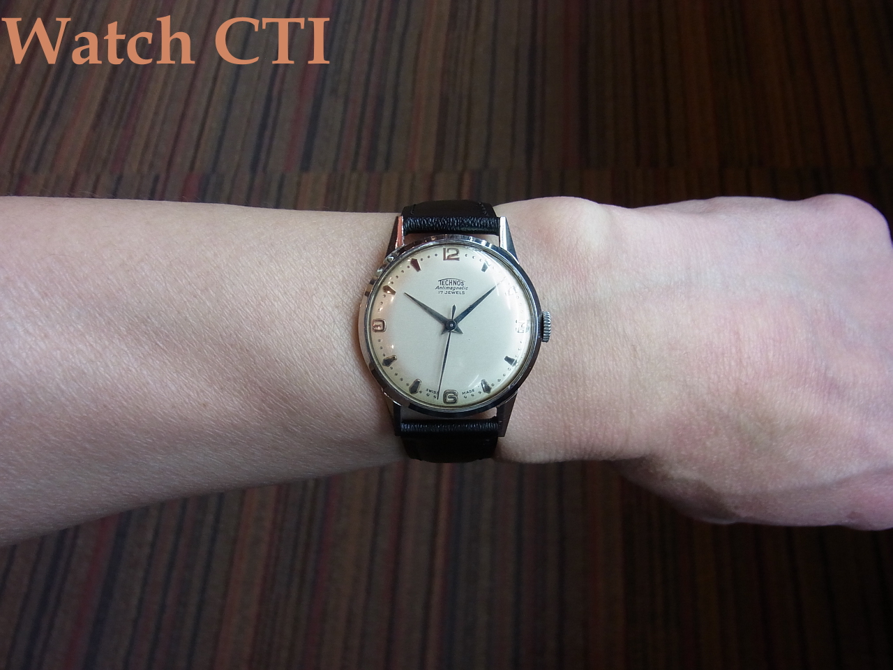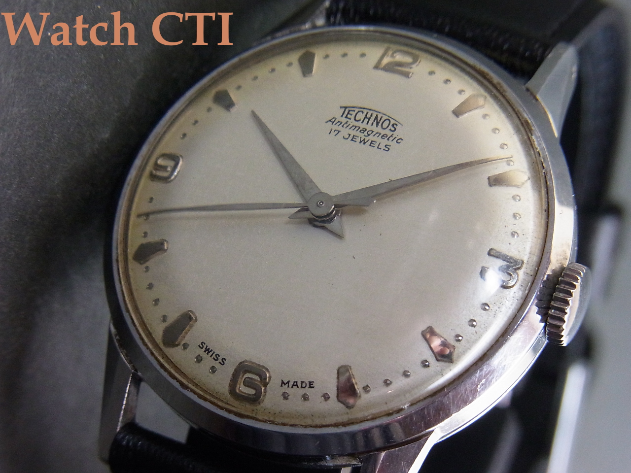 ダイヤルにプリントされた旧ロゴのTSCHNOS銘が雰囲気抜群です。
