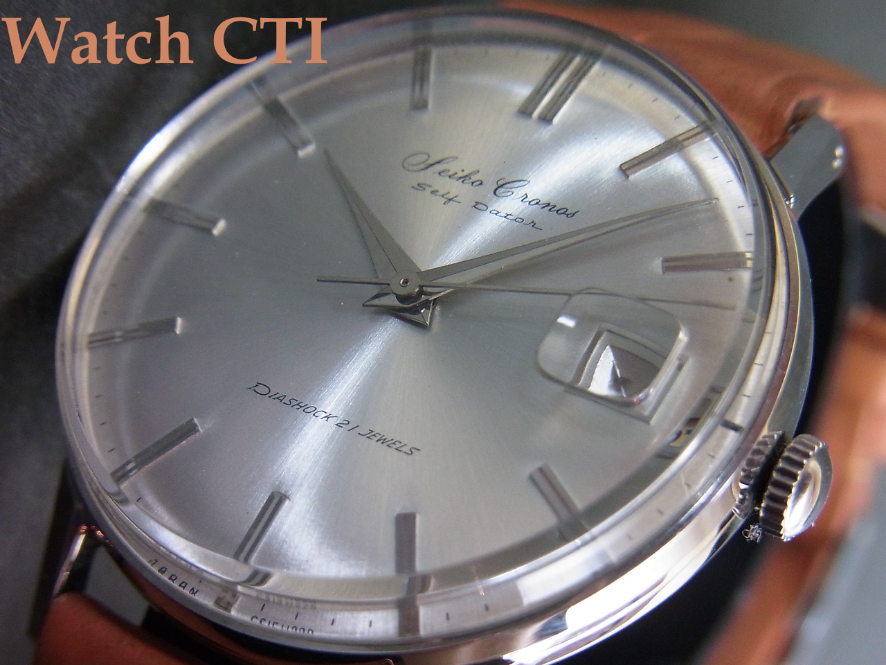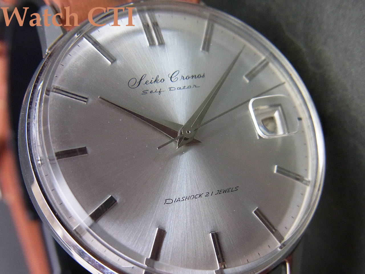 今、ヴィンテージ品としての評価は「使い込まれていない品」という点で高評価が付くのであり、売れ残っていた時計店では棚卸されて以来長い年月を経た厄介者でした…..当然「経年変化」がでています。中には、棚卸後にパーツを取られてドナーになってしまった個体だって出てきます。そういう点でデッドストック品にはエンドユーザーに実用使用された痕跡はなくとも棚卸以降の時計店での現在までの保管状況次第ではユーズド品にも劣る品だって実際にはございます。ただし、私たちが仕入れるのはそんな中でもできる限り優良なオリジナル状態を保っているものを選択してはいるのです。が、ほぼすべての個体で何らかの経年変化痕跡や手を入れた痕跡が見られますので、工場出荷直後の「未使用新品」とは区別してお考え下さい。宜しくお願い致します。
