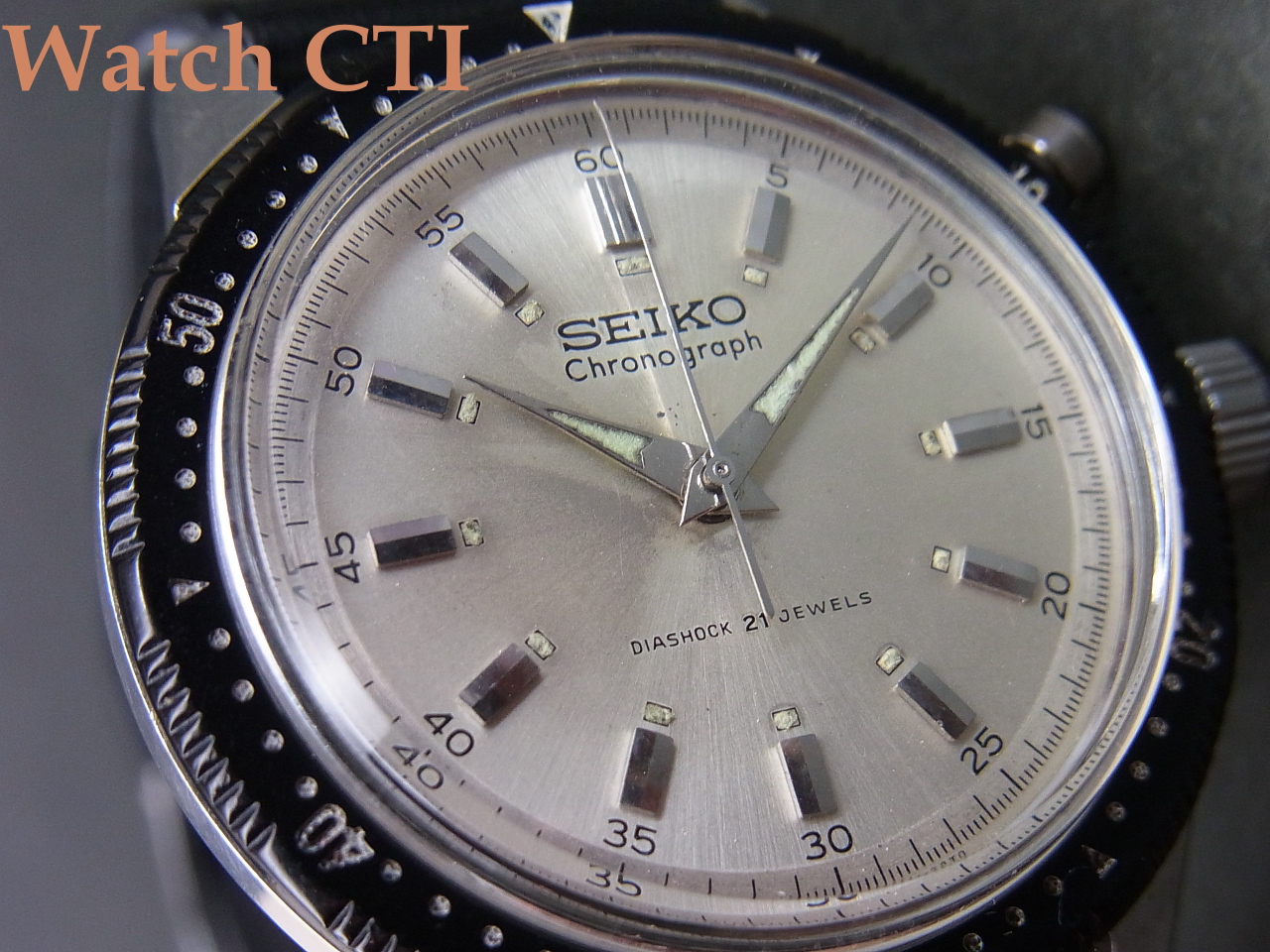 プラスチックベゼルはエッジがやや丸く減りが出ていますがもっと酷いのをよく目にしますのでまずまずでしょうか…機械はクロノを含め好調です。なにより風防がジェネリック新品で、今や結構入手しづらくなりましたよ!