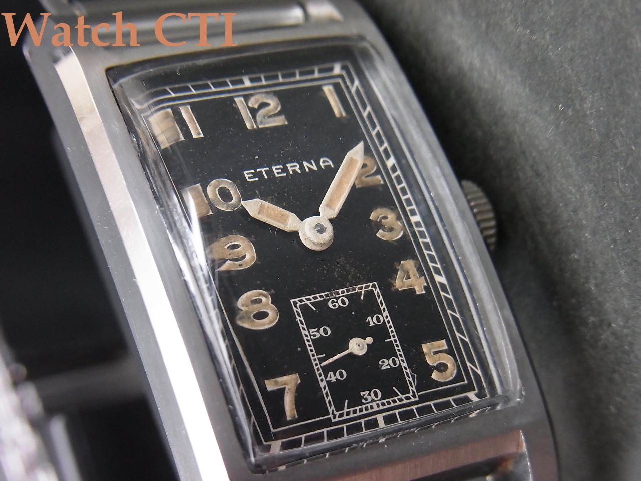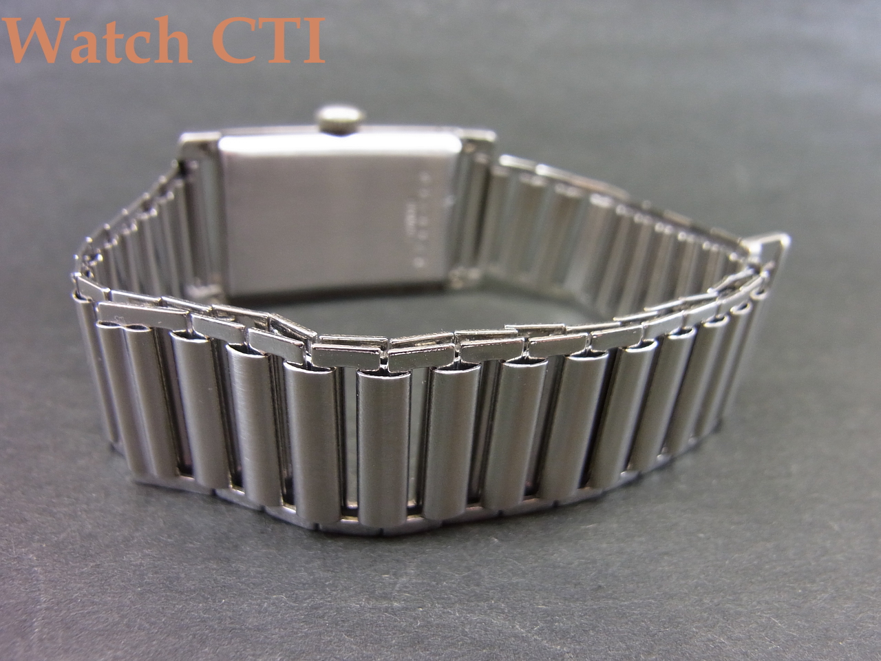 ☆ダイヤルがやられやすい角型ケース、現品は防水を意識した4つビス(イモネジ)式の恩恵もあったのでしょうが、ギルト仕上げのミラーブラックダイヤルもそこに乗る夜光インデックスとペンシル2針も….してケース自体も、そのシャープさなどから、相当に保存状態の良い逸品と言えますね!