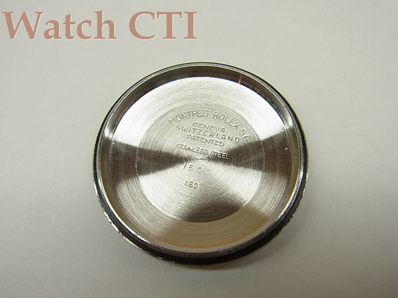 なお、現品に搭載されているキャリバーは5.5振動クロノメーター仕様のC.1575(地板の刻印はC.1570)ですが、ケースバック刻印の年式である1960年には未だデビューしていません(5振動クロノメーターC.1560の時代です)。またミドルケースのシリアルからは66~67年と推測されます。従いまして、ムーブとミドルケースの時代はマッチしますがケースバックとの時代が整合しません。
