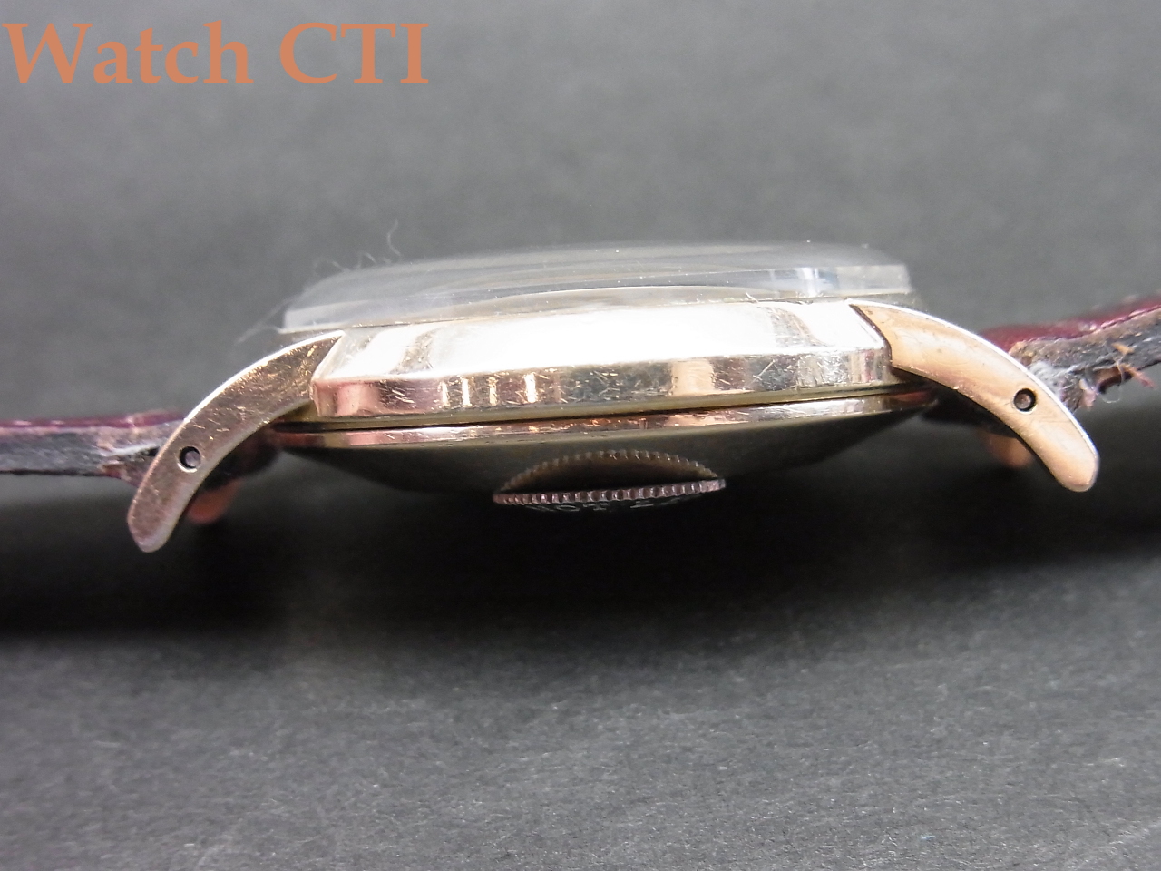 *10金張りのケースはアメリカ国内製で当時のアメリカ・ルクルトがケーシングした純正ものです。何種類かのケースデザインがありますが、今回入荷の個体は非常に細めかつ長く湾曲したケースラグが特徴的な一本です!状態自体は剥離等見られませんが、ケースラグにちょっと深めな線傷が見られます。おそらくベルトの脱着の際に工具で着けてしまったものでしょう…画像4枚目でご確認頂けます。