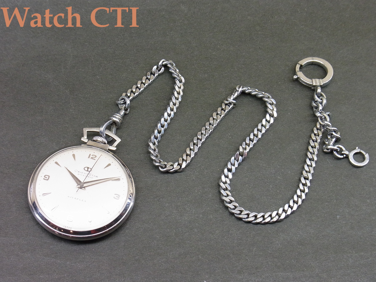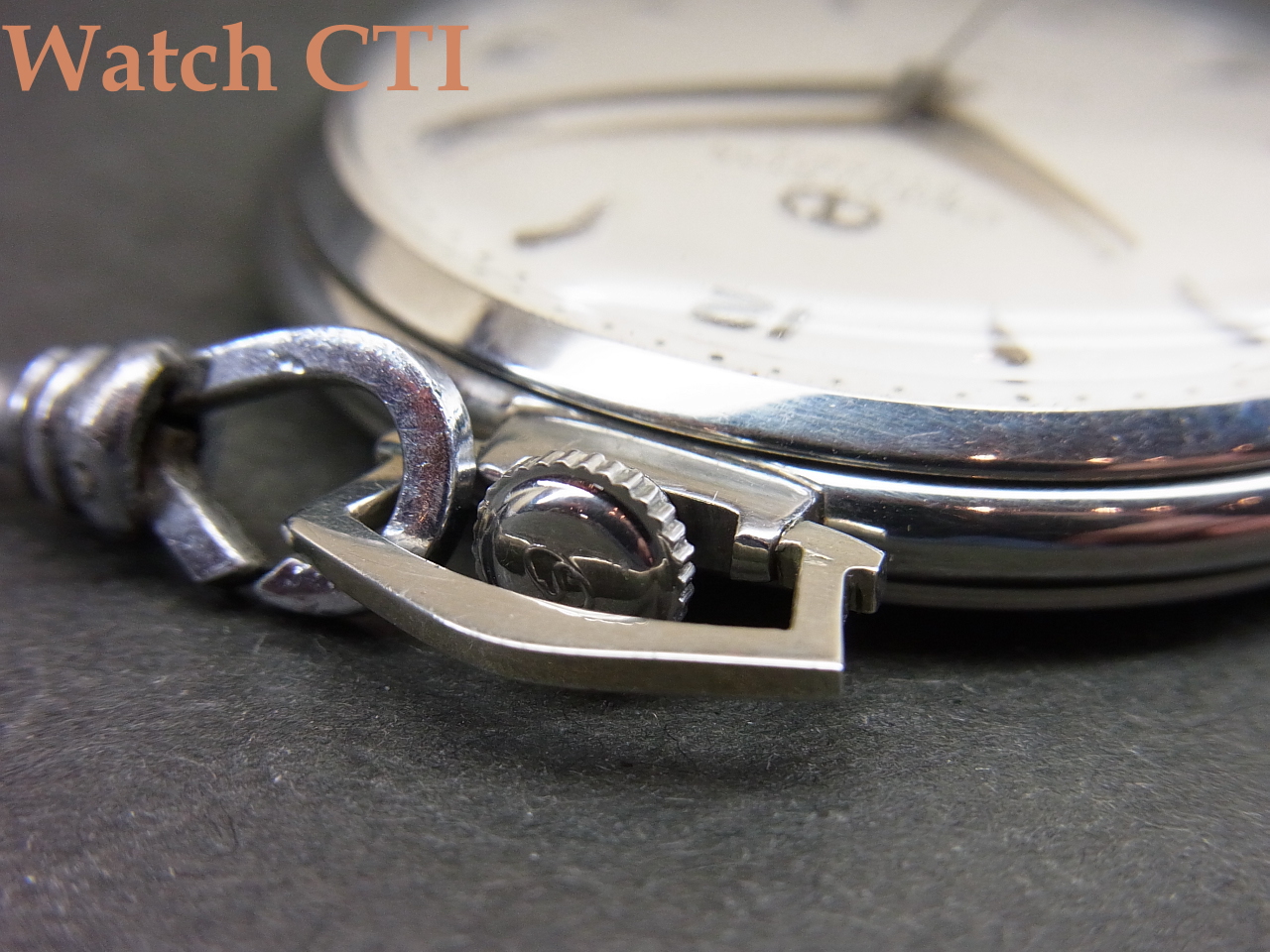 良い形のコマをした付属の懐中時計専用チェーンはスチール製でかなりのオールドものです、戦前でしょうか…。