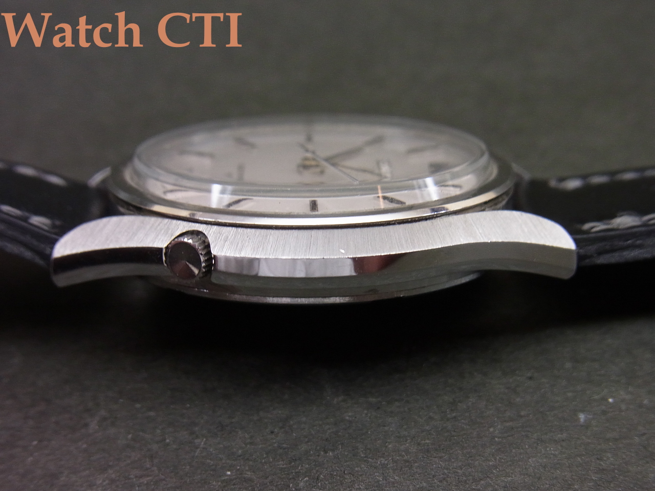 今、ヴィンテージ品としての評価は「使い込まれていない品」という点で高評価が付くのであり、売れ残っていた時計店では棚卸されて以来長い年月を経た厄介者でした…..当然「経年変化」がでています。中には、棚卸後にパーツを取られてドナーになってしまった個体だって出てきます。そういう点でデッドストック品にはエンドユーザーに実用使用された痕跡はなくとも棚卸以降の時計店での現在までの保管状況次第ではユーズド品にも劣る品だって実際にはございます。ただし、私たちが仕入れるのはそんな中でもできる限り優良なオリジナル状態を保っているものを選択してはいるのです。が、ほぼすべての個体で何らかの経年変化痕跡や手を入れた痕跡が見られますので、工場出荷直後の「未使用新品」とは区別してお考え下さい。宜しくお願い致します。