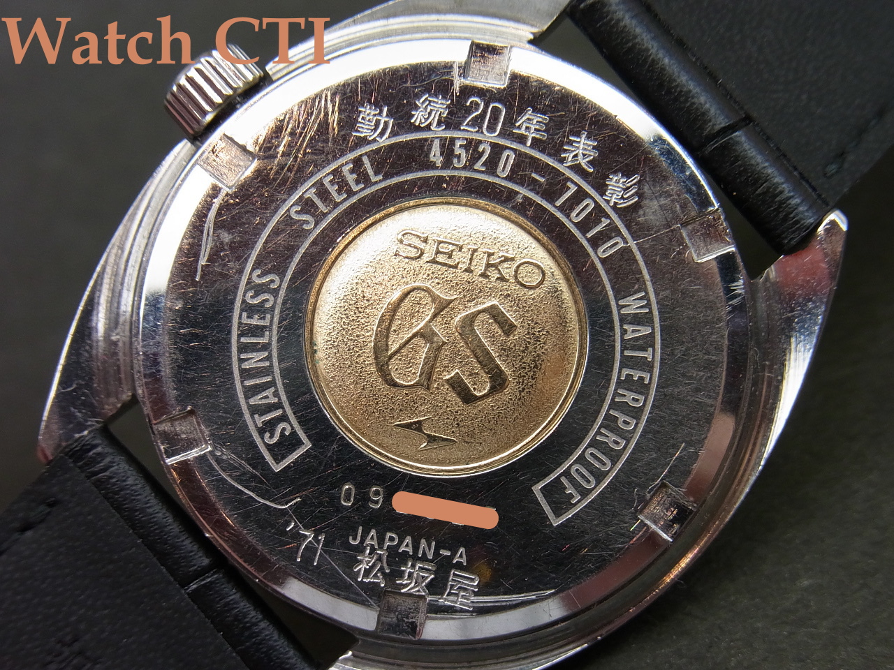 *ケースバックには「松坂屋」さんで1971年に勤続20年を迎えた従業員の方への記念品を示す献辞が刻まれております!企業もの献辞のGSと言えば何といっても「東芝」が数で圧倒しておりますが、こちら7010番ケースのGSを記念品に使うあたりのセンスはデパートならではでしょうか….!