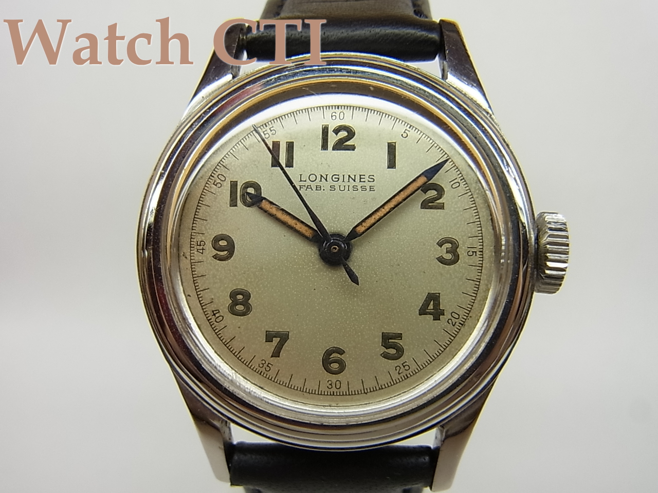 ミリタリーというと文字板がブラックのものを連想されますが、現品は調べたところ将校クラスに支給されたものとのこと……なるほど!