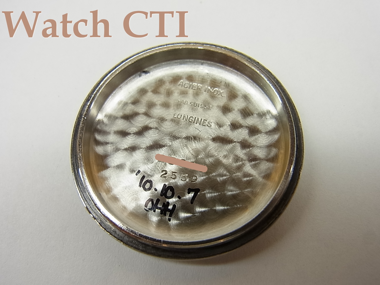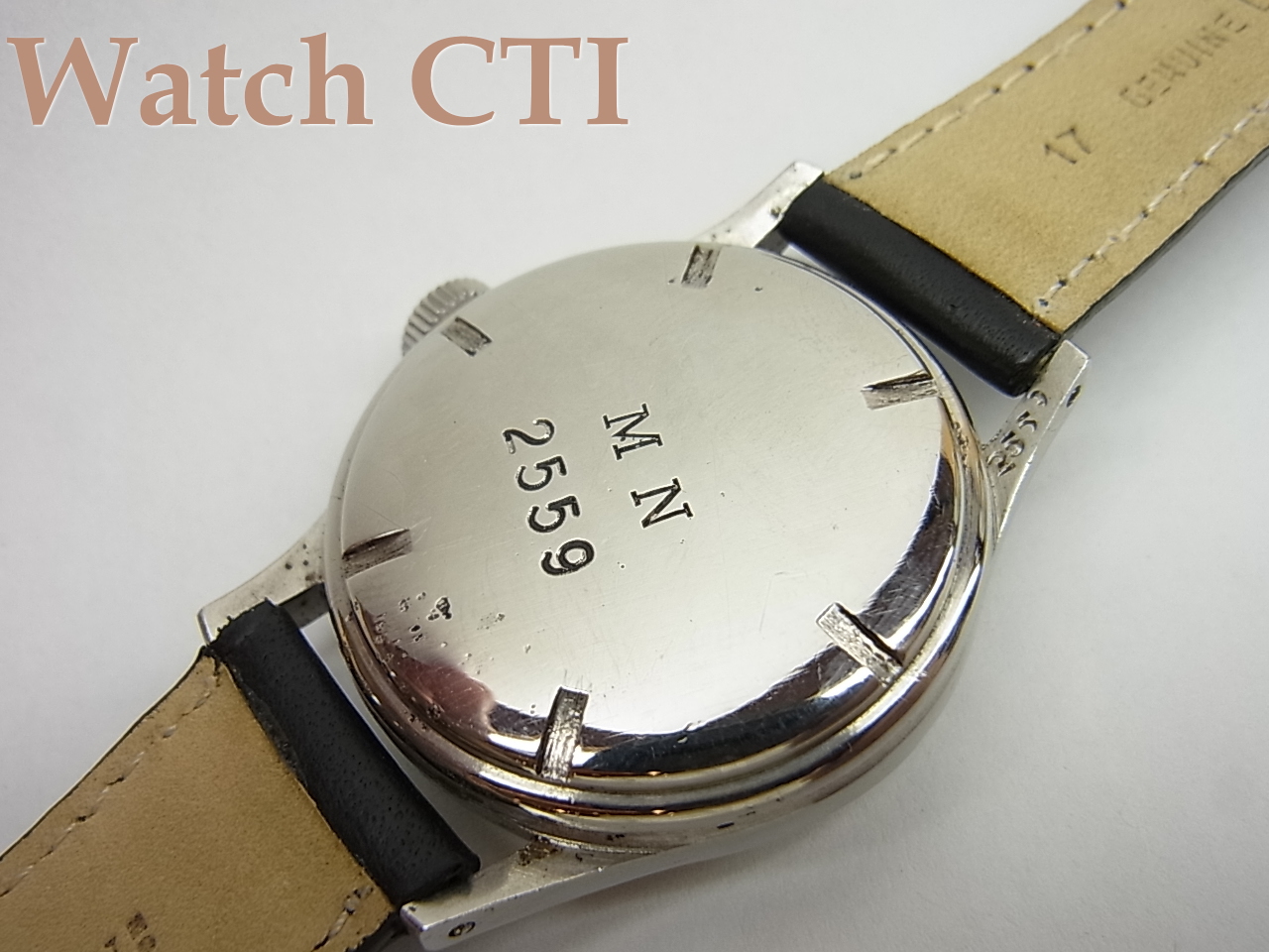 がっちりしたつくりのステンレス製ケースは、海軍用ということもありスクリューバック式で当時基準の防水を確保しております。