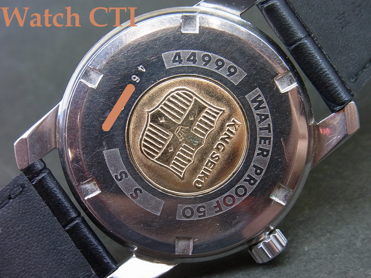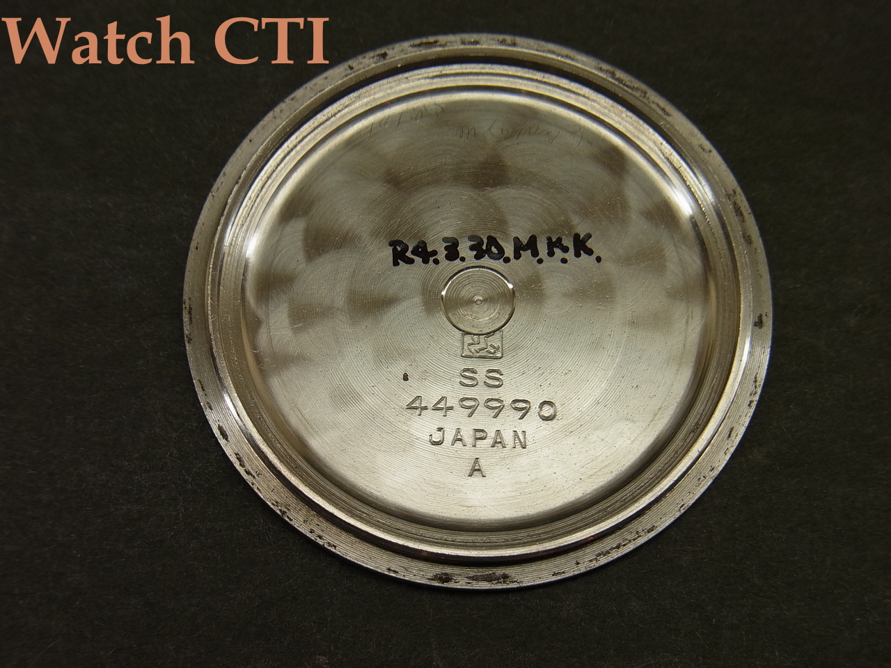*秒針規制の方式を述べましたが、「鎌」状レバー採用した前期型にはキャリバーナンバーが刻印されておりません。Cal.44Aは本来後期型に付けられたキャリバーナンバーとなり、こちら前期型は元来キャリバーナンバーを持ちませんが、一般的には前期/後期で分けてどちらにも適用しております。また、前記型はファーストKS以来の「盾」のメダリオンをケースバックに持ち、こちらは後期のKS印ケースバックよりも「ありがたい」感があり好ましいものです。