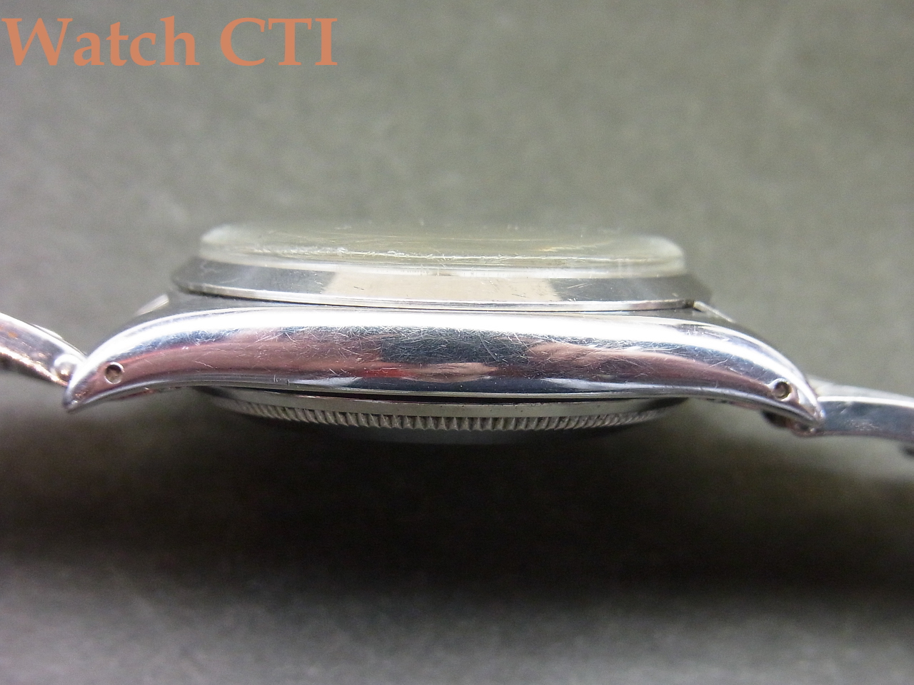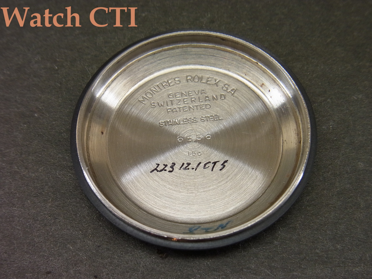 *さて、現品ですが、ダイアルにはTRU-BEATの銘が入っておりませんが、正にTRU-BEATで使っていた仕様のダイアルそのもので、Cal040スィープ運針仕様搭載です….とすると、この個体はおそらくステップ秒針のC.1040搭載した6556ではなく販売当初からスィープ運針仕様に仕様変更(Ref6558)して出荷された個体では無いかと推察されます。ケースミドルRef6558で市場に流通している個体を検証するとC.1030搭載もあるようですが、当個体はCal040スィープ運針仕様にケースバックには在庫として残っていた6556を装着して出荷された6558パーペチュアル・トランジショナル仕様になると思います。