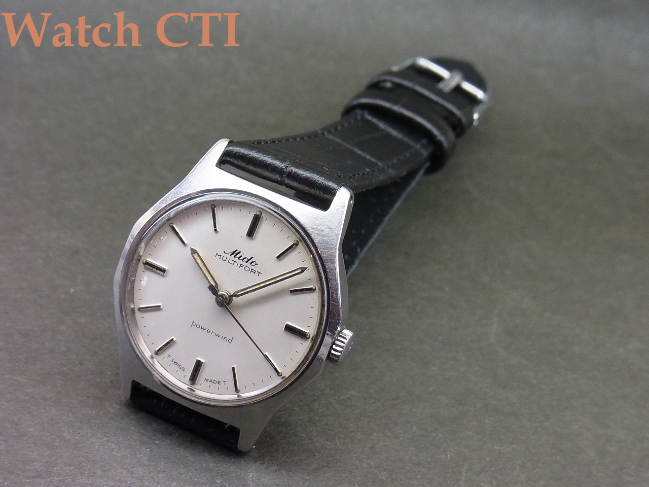 ☆ミドー(マイド―)のマルチフォートと言えば、ハーフローター自動巻を搭載した小ぶりでヴィンテージ感溢れる諸々のダイヤルを搭載したモデルを連想しがちですが、後年になるとこのような大振りケースにシンプル院デックの全回転式自動巻を搭載したモデルを出しております!流通数は結構少ないようであまり見かけません。
