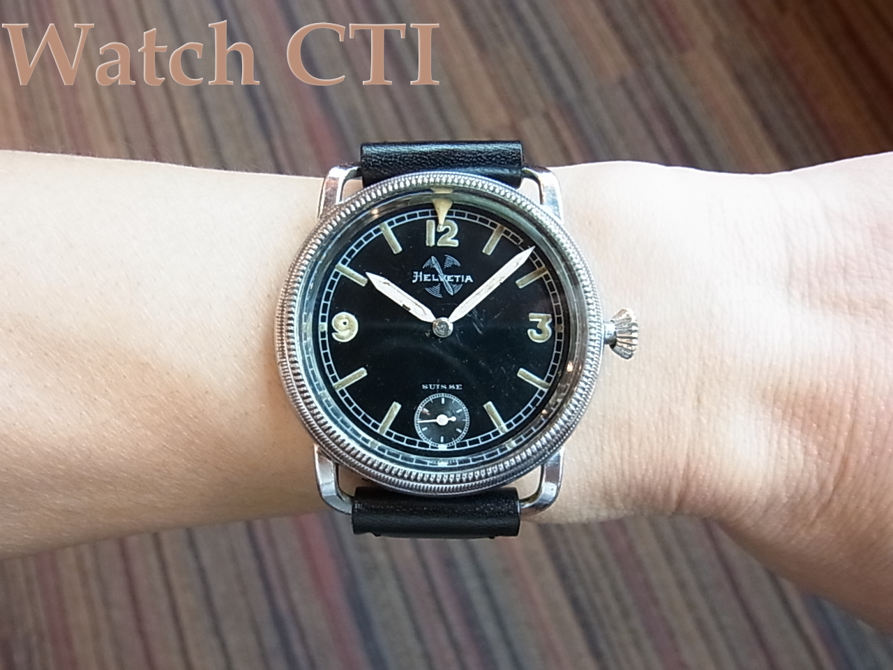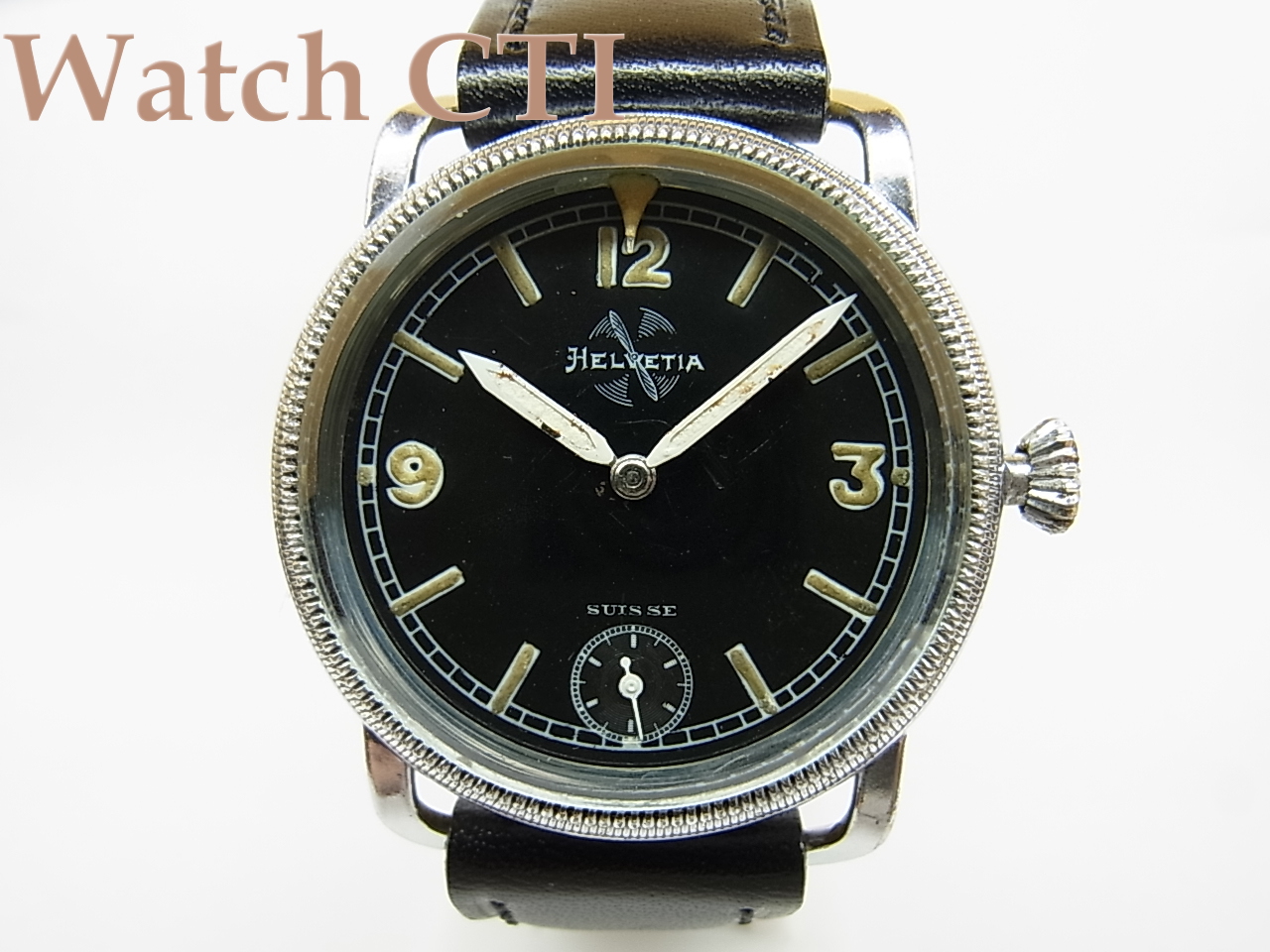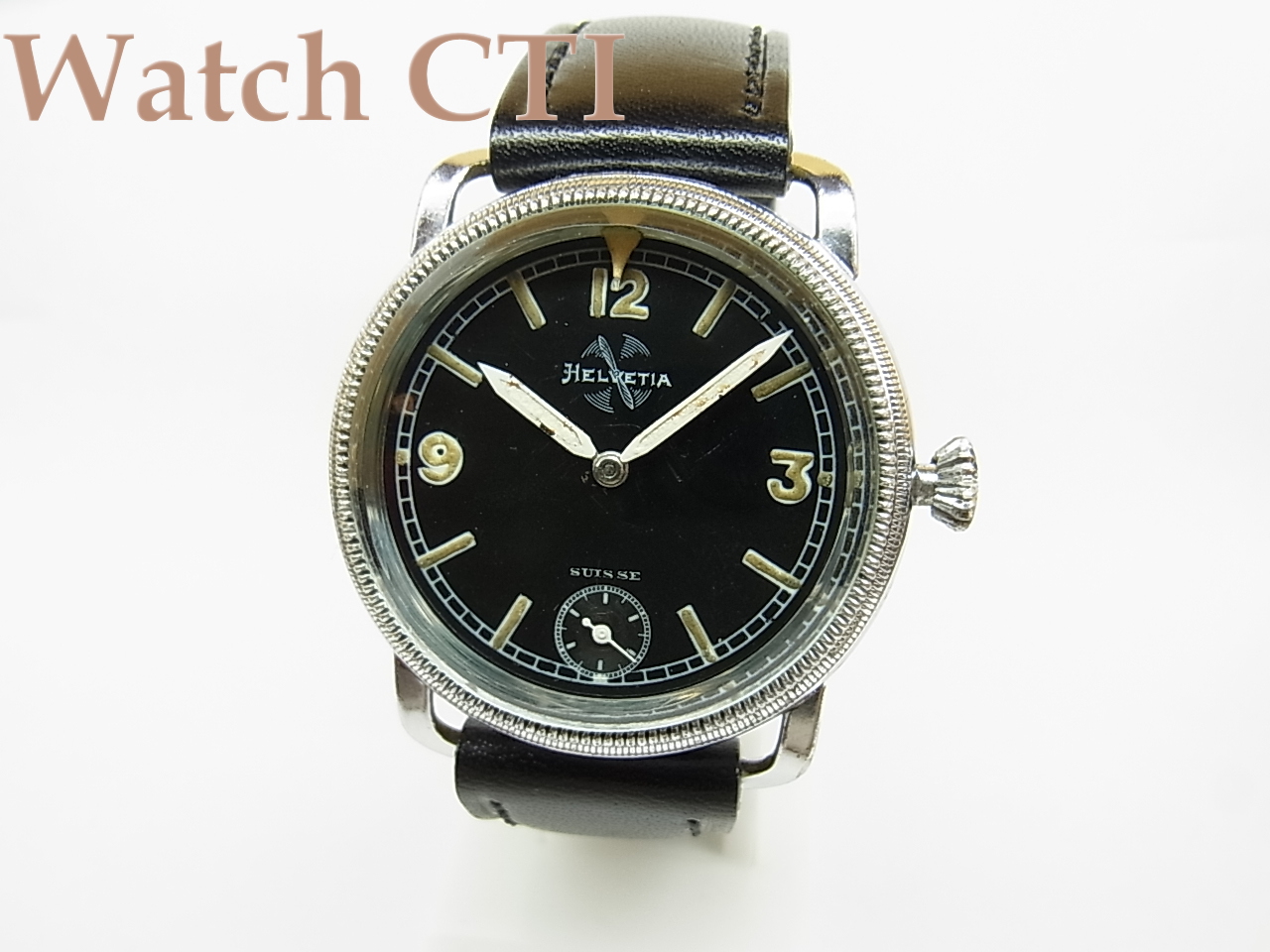 懐中時計のイメージを未だに色濃く残した腕時計で、スイスのヘルヴェチカ製。