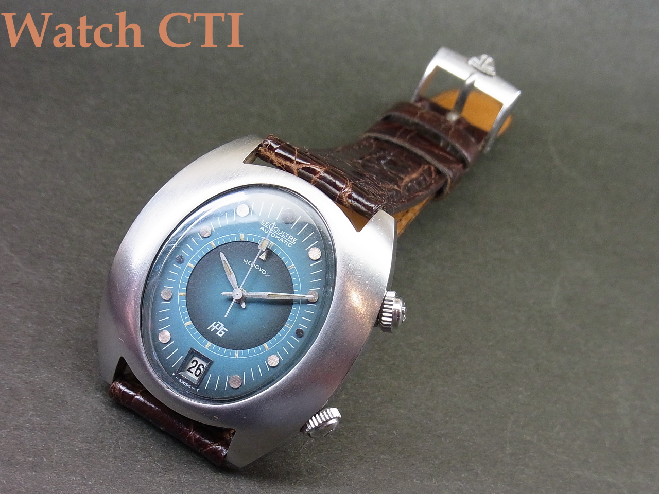 外装の分厚いステンレススチールは軽めな仕上げが入っておりますが違和感ございません。何よりダイヤル形状とブルーのグラデーション具合が素敵すぎますね!!そして「HIGH PRECISION GUARANTEE」です!