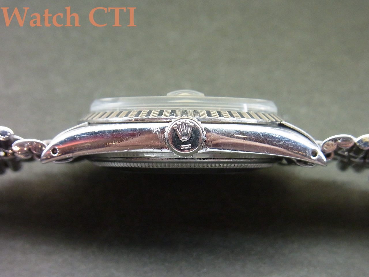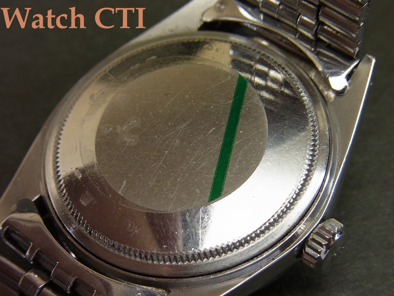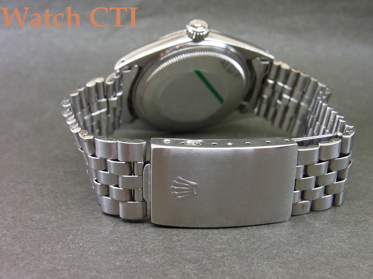 また、巻きジュビリーのブレスは本来22コマが元サイズの場合が多いのですが、当個体は24コマとエクストラになっておりますね!腕のがっちりした方でも全然余裕カト…..。なお、そのブレスに付くバックル(3つ折れ部分)は後年年式刻印(N6=1989年)のバックルに交換されています。おそらく継ぎの可動部の破損等が出たのでしょう。その他はオリジナルのままです(風防は交換されております)