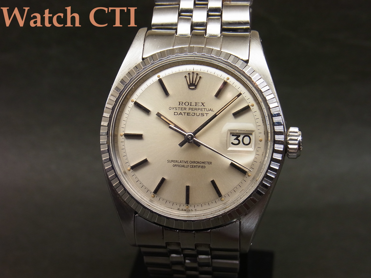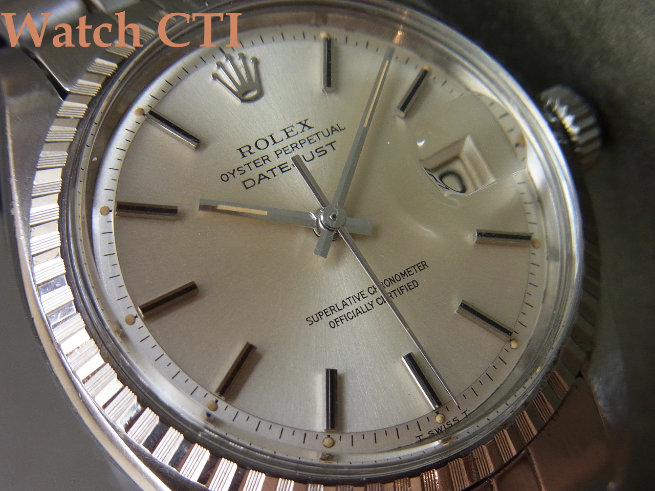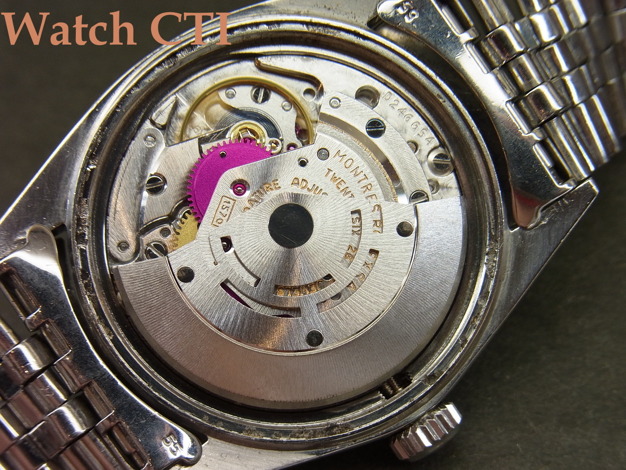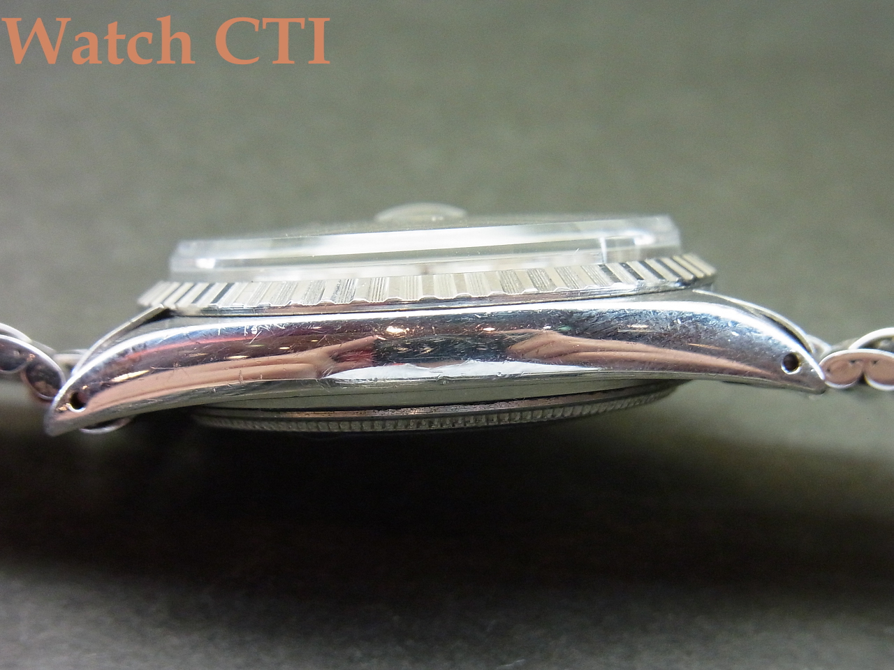 また、巻きジュビリーのブレスは本来22コマが元サイズの場合が多いのですが、当個体は24コマとエクストラになっておりますね!腕のがっちりした方でも全然余裕カト…..。なお、そのブレスに付くバックル(3つ折れ部分)は後年年式刻印(N6=1989年)のバックルに交換されています。おそらく継ぎの可動部の破損等が出たのでしょう。その他はオリジナルのままです(風防は交換されております)