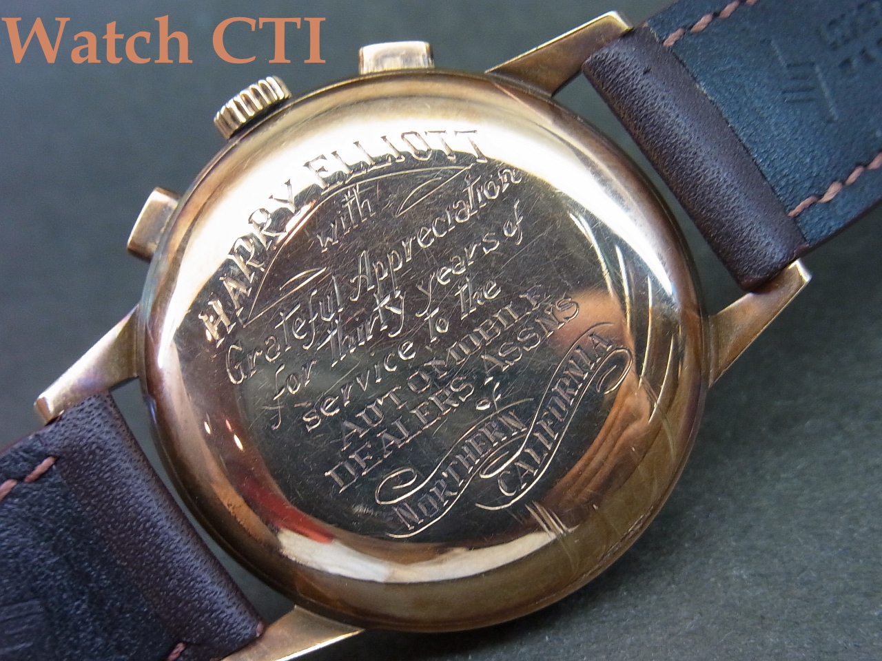 ケースバックに永年勤続記念の献辞がぎっしり刻まれ、「歴史」を物語る個体です!