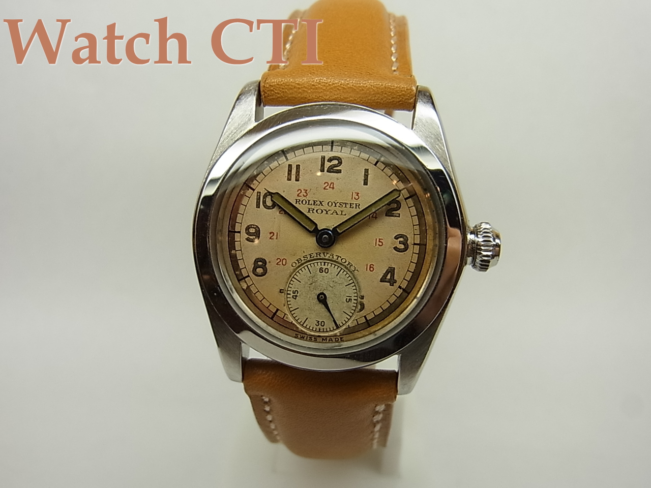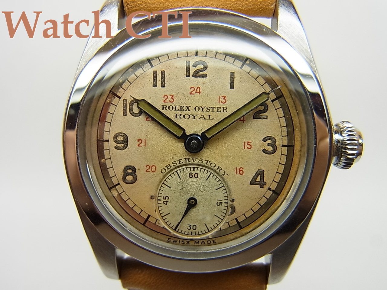 30年代中後期より50年代まで製造されたために、あまりに多くの文字板ヴァリエーションがありすぎて、その全貌は解明不可能ですが、今回入荷の一本は、そんなロイヤルのなかでも相当ハイスコアな部類でしょう!!