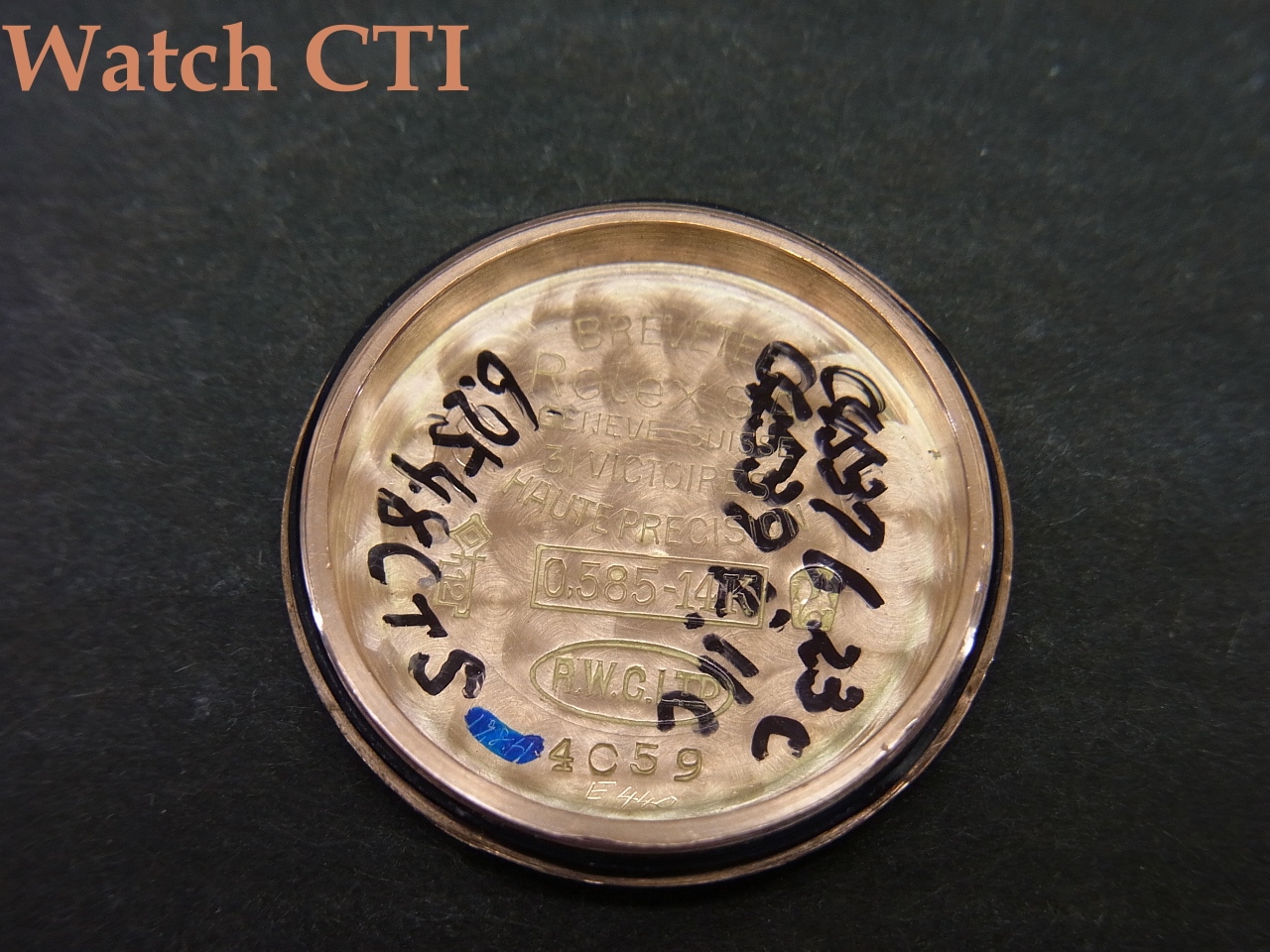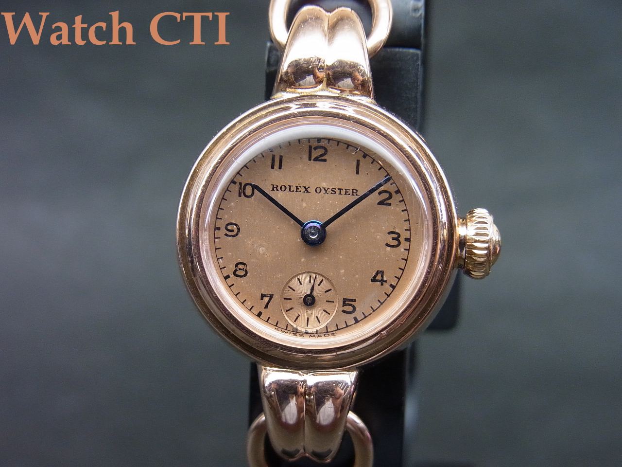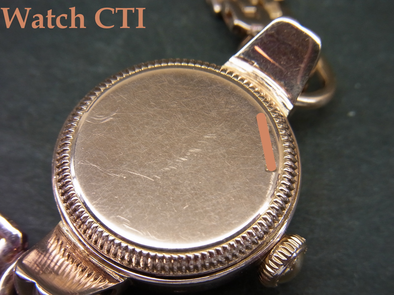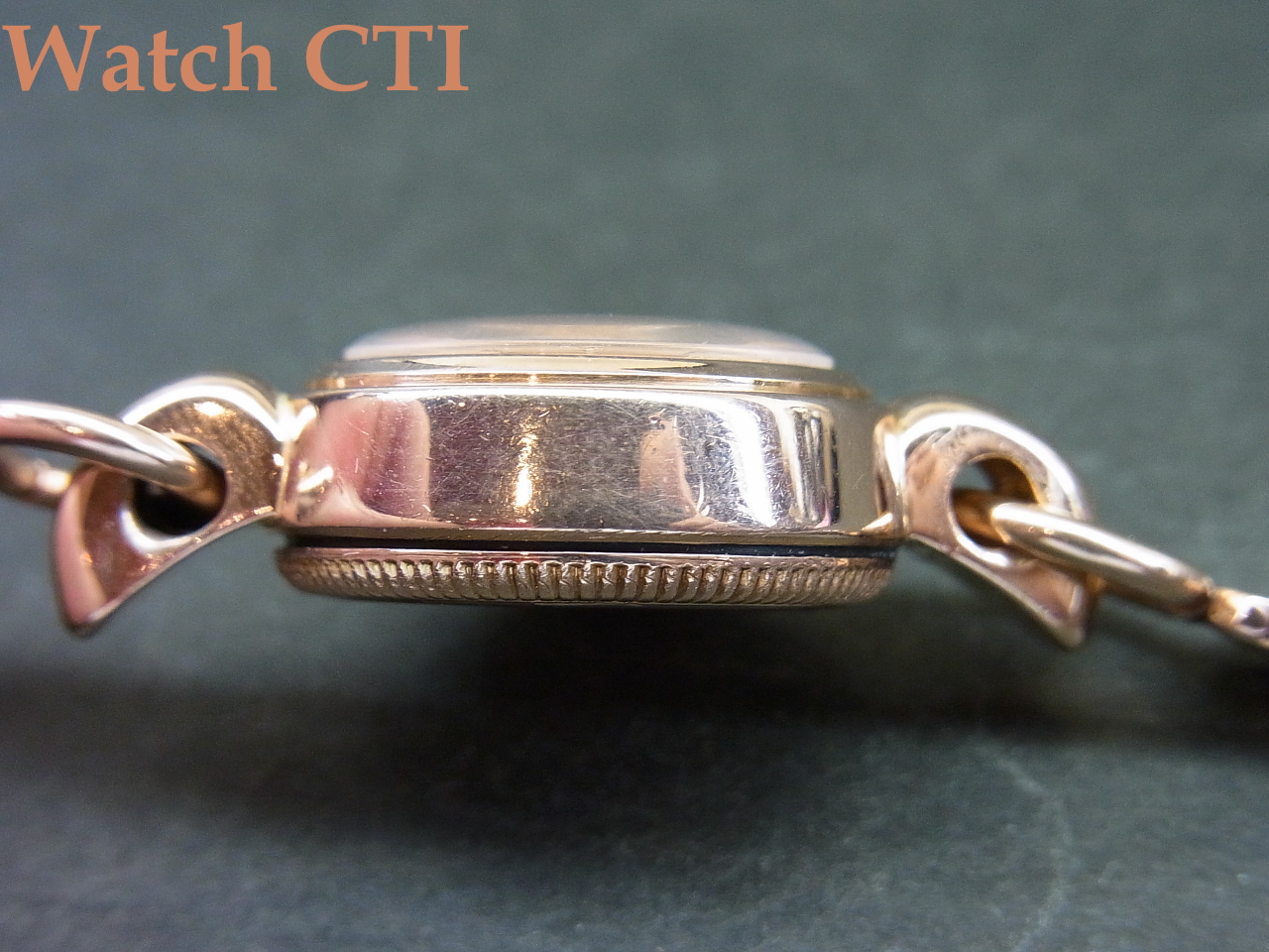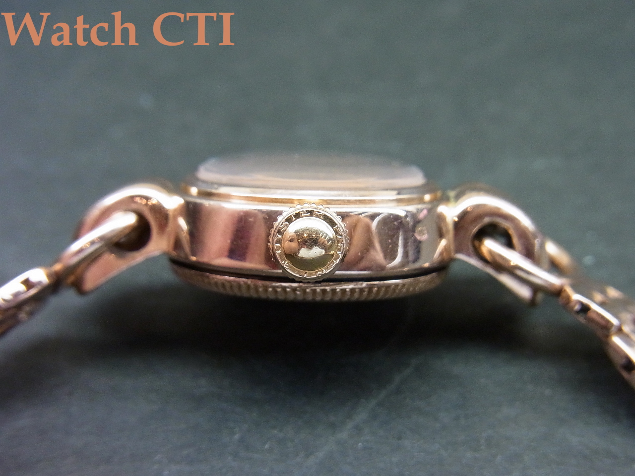 付属するブレスレットも14ピンクゴールド製ですが、メーカー名などの刻印が入っていないため社外品かとは思われます(ですが、そうだとしても14金ピンクゴールドの色合いが見事にケース側とマッチしておりますね….)