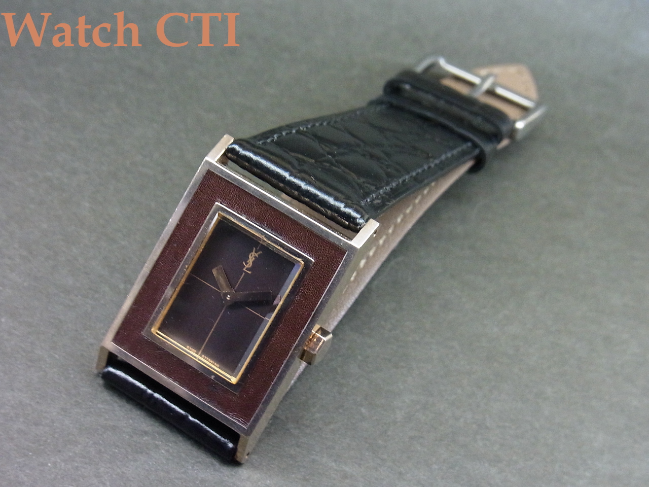 [S3025] イヴ・サンローラン レクタンギュラー皮貼ベゼル [販売済]