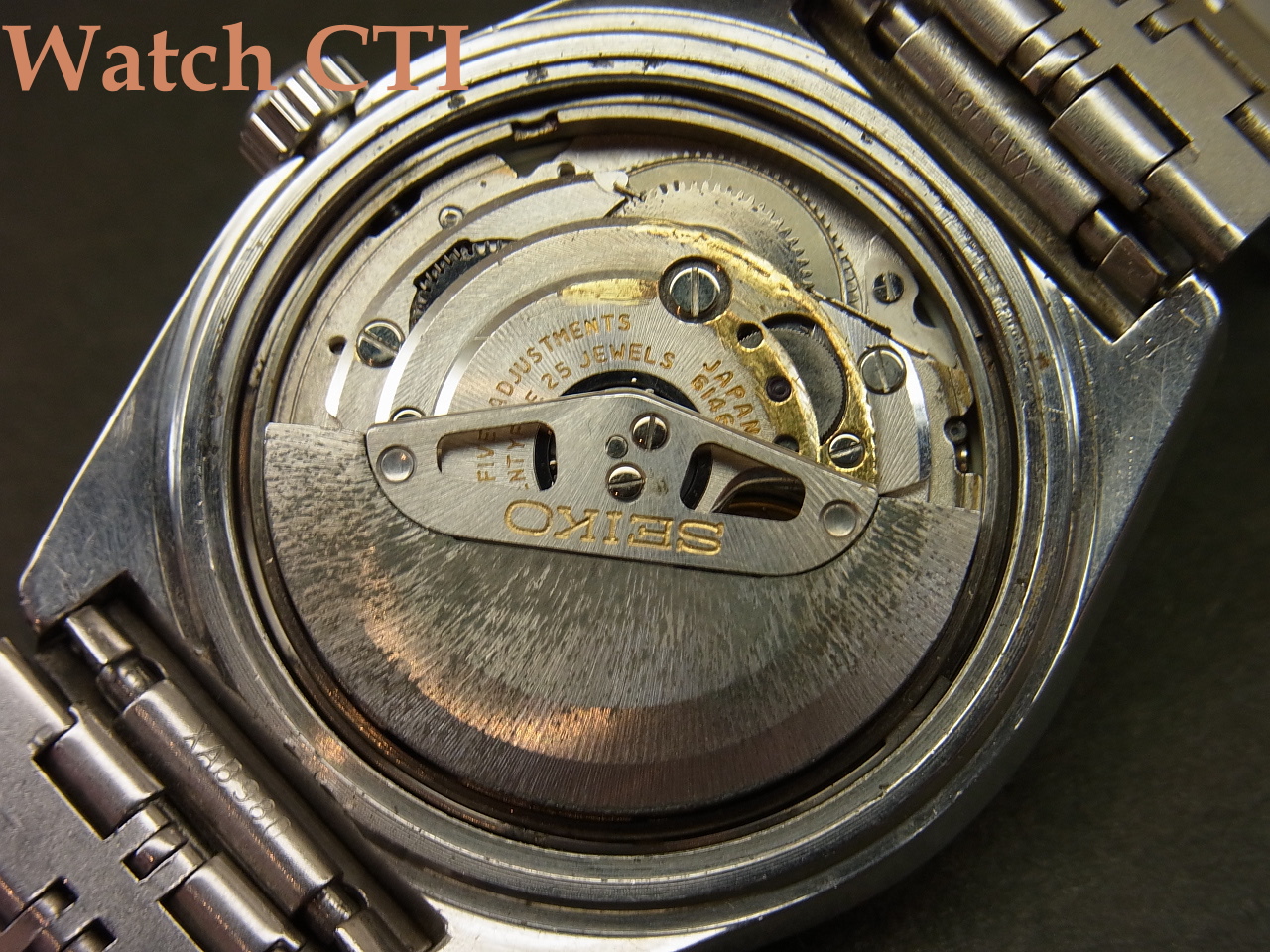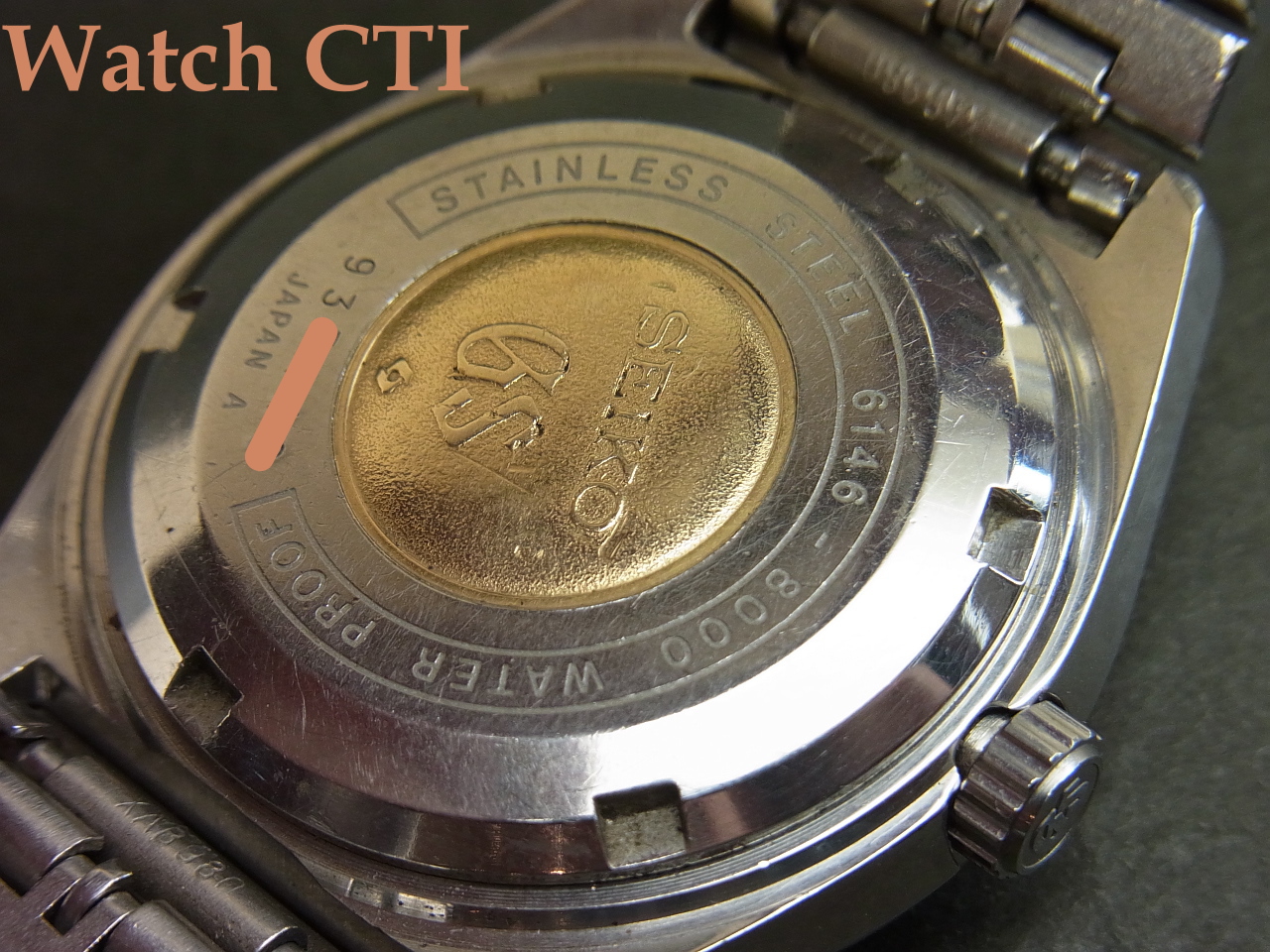 尚、付属のブレスレットは当時のSEIKO銘入り製品ですが、このモデル用に作られた個体ではなく汎用で販売されていた物となります。純正装着品とかなり似通ったデザインで違和感なく使用出来ると思います。機械見た目の瑕疵と合わせて予めご理解下さい。