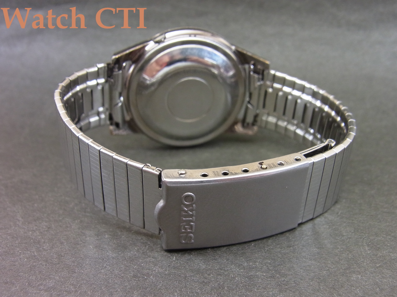 *なお、装着されるブレスレットは当時セイコーで諸モデルに装着していたSTL製のステンレスブレスレットとなりますが、当個体に元から装着されていたか否かは検証不可能ですの予めご理解下さい。…..当時のセイコー業界資料やパンフレットなどに数種のSTL製ブレスレットが装着された製品を見ることができますね。
