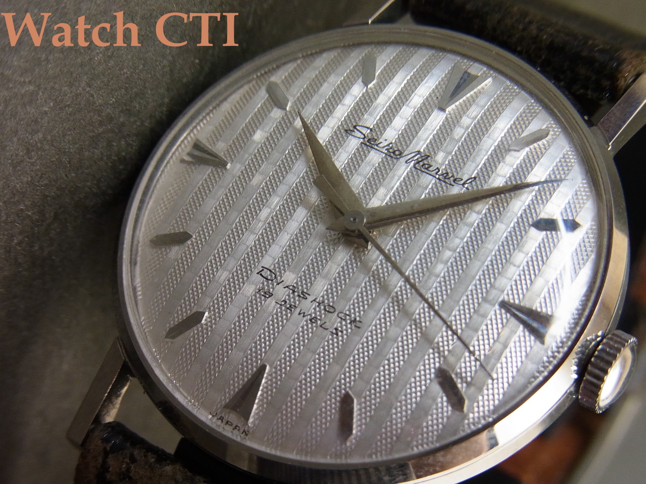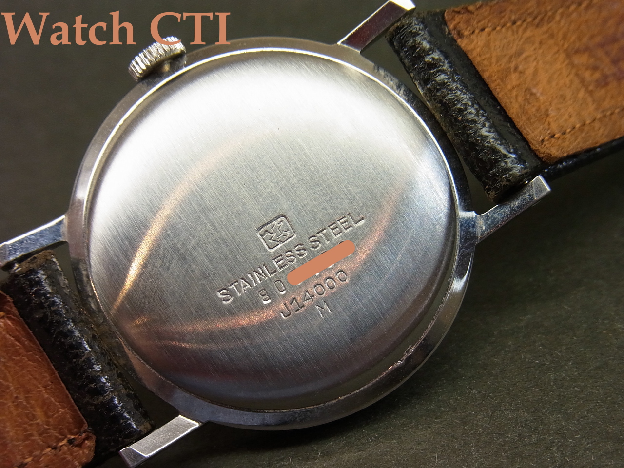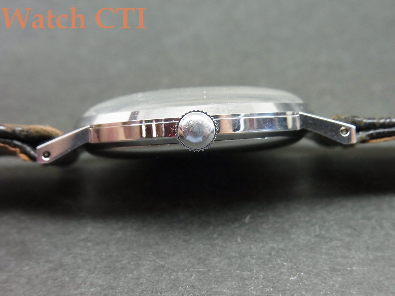 今、ヴィンテージ品としての評価は「使い込まれていない品」という点で高評価が付くのであり、売れ残っていた時計店では棚卸されて以来長い年月を経た厄介者でした…..当然「経年変化」がでています。中には、棚卸後にパーツを取られてドナーになってしまった個体だって出てきます。そういう点でデッドストック品にはエンドユーザーに実用使用された痕跡はなくとも棚卸以降の時計店での現在までの保管状況次第ではユーズド品にも劣る品だって実際にはございます。ただし、私たちが仕入れるのはそんな中でもできる限り優良なオリジナル状態を保っているものを選択してはいるのです。が、ほぼすべての個体で何らかの経年変化痕跡や手を入れた痕跡が見られますので、工場出荷直後の「未使用新品」とは区別してお考え下さい。宜しくお願い致します。