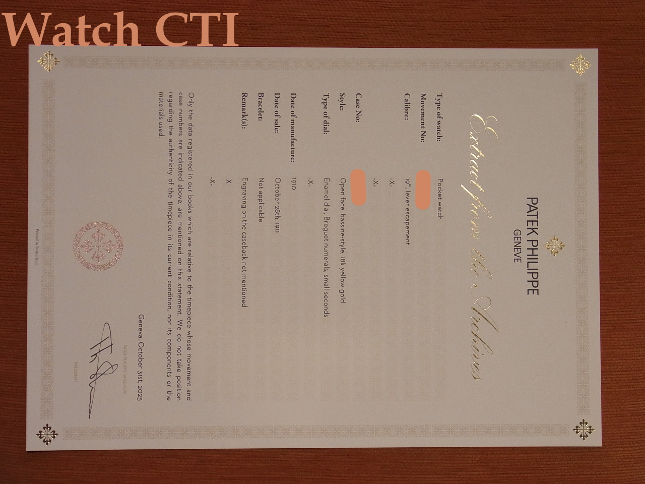 [S3088] パテック・フィリップ 18KYGケース 19型オープンフェイス懐中時計 ”アーカイブ付き” [販売済]