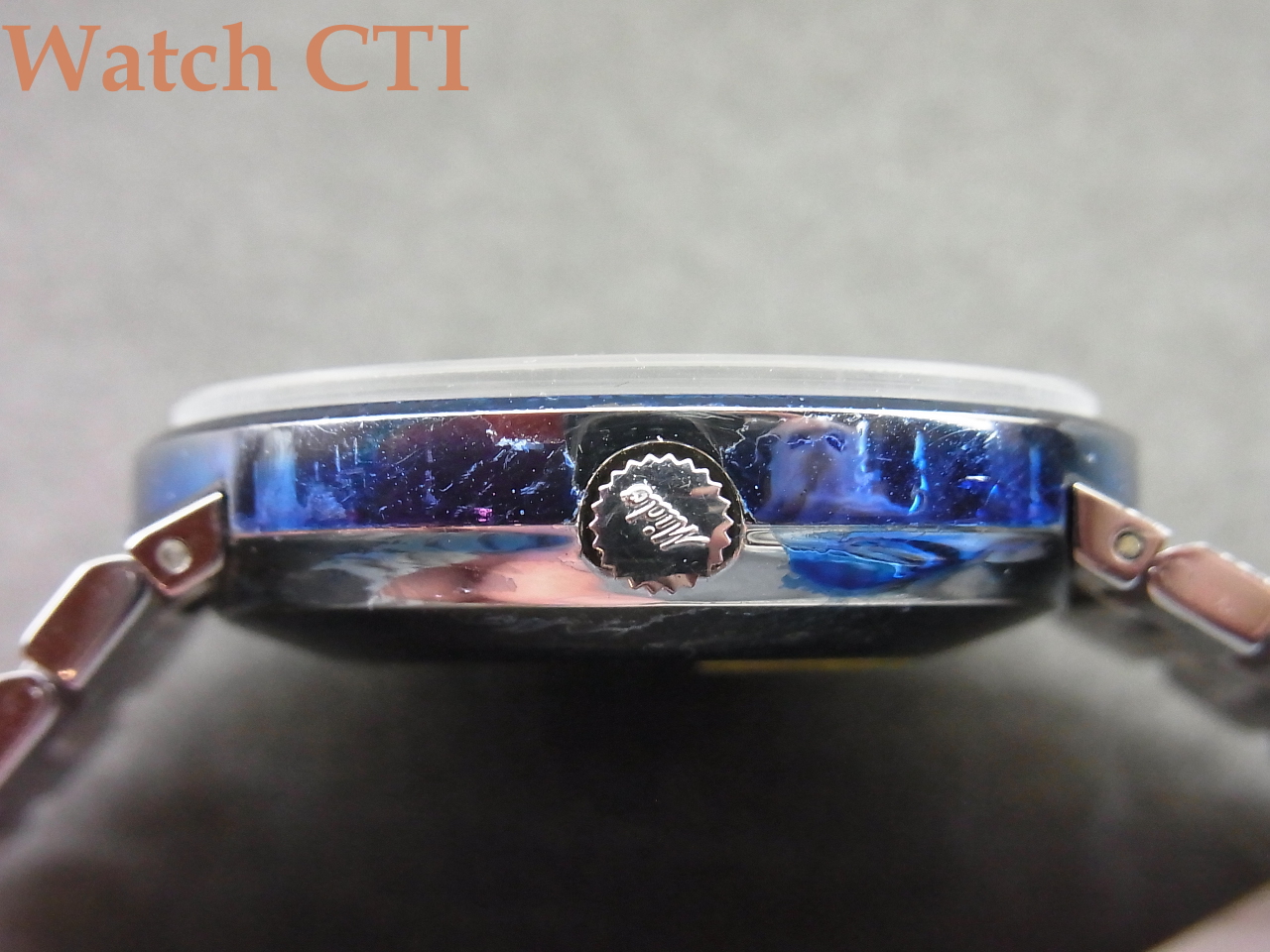 今、ヴィンテージ品としての評価は「使い込まれていない品」という点で高評価が付くのであり、売れ残っていた時計店では棚卸されて以来長い年月を経た厄介者でした…..当然「経年変化」がでています。中には、棚卸後にパーツを取られてドナーになってしまった個体だって出てきます。そういう点でデッドストック品にはエンドユーザーに実用使用された痕跡はなくとも棚卸以降の時計店での現在までの保管状況次第ではユーズド品にも劣る品だって実際にはございます。ただし、私たちが仕入れるのはそんな中でもできる限り優良なオリジナル状態を保っているものを選択してはいるのです。が、ほぼすべての個体で何らかの経年変化痕跡や手を入れた痕跡が見られますので、工場出荷直後の「未使用新品」とは区別してお考え下さい。宜しくお願い致します。