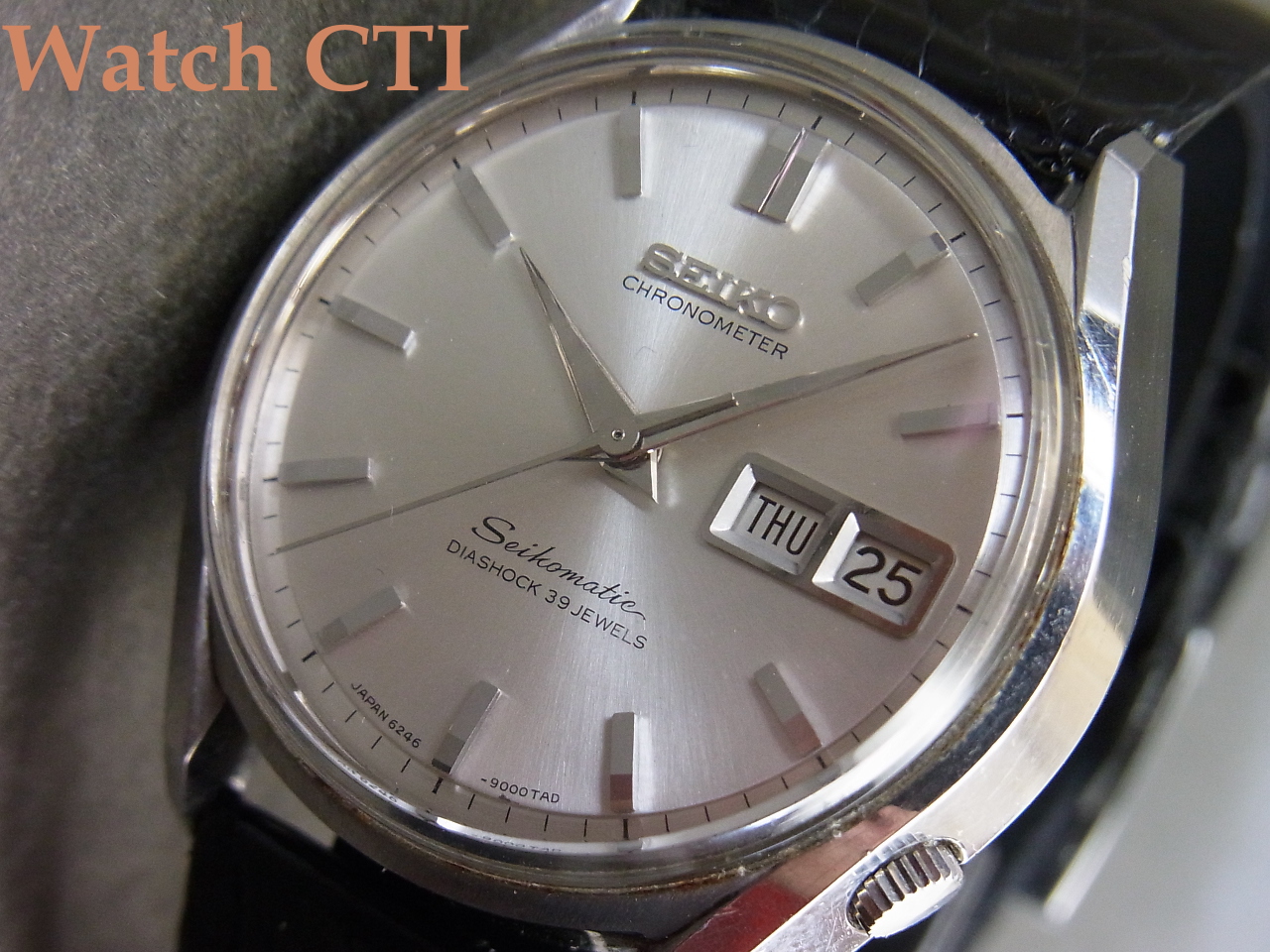 We will change the Crocodile, Lizard, and other Leather Straps against Washington Treaty fitted on this to the Calf Leather strap. It is prohibited to export the crocodile and some other leather items without CERTIFICATE of ORIGIN by the Washington Treaty. The leather straps sold in JP domestic market usually does not have the CERTIFICATE.
