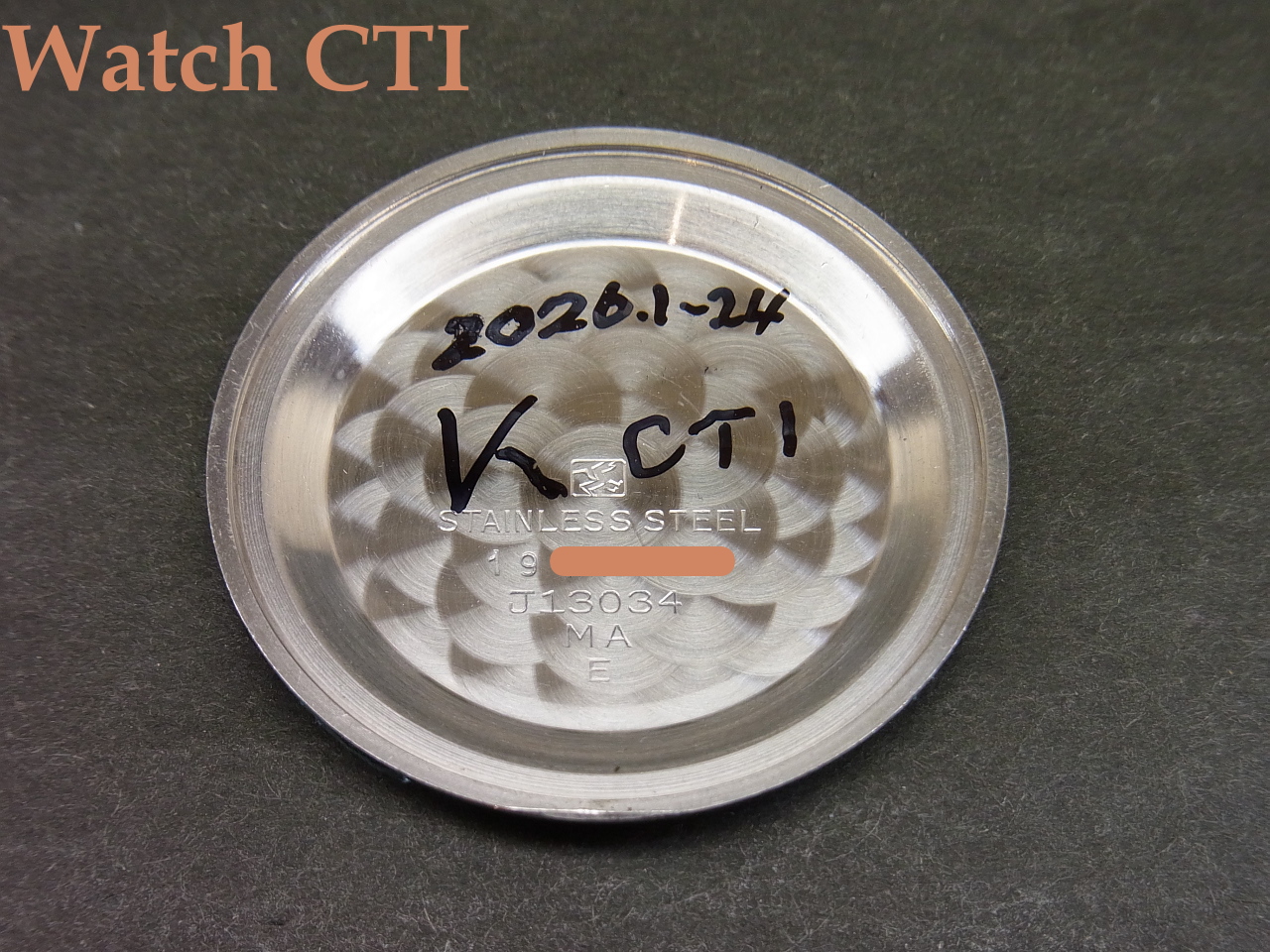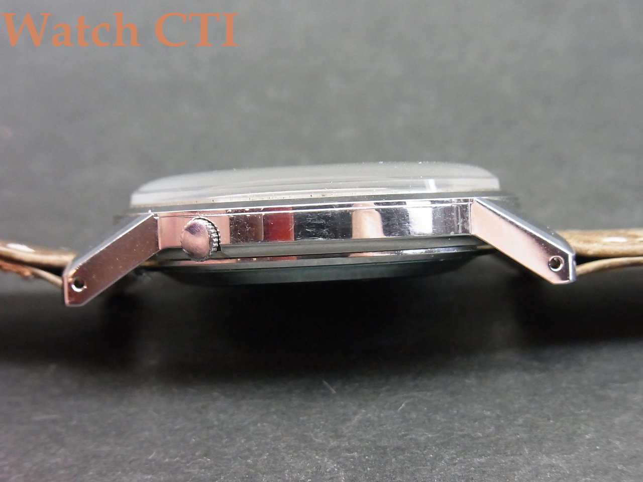今、ヴィンテージ品としての評価は「使い込まれていない品」という点で高評価が付くのであり、売れ残っていた時計店では棚卸されて以来長い年月を経た厄介者でした…..当然「経年変化」がでています。中には、棚卸後にパーツを取られてドナーになってしまった個体だって出てきます。そういう点でデッドストック品にはエンドユーザーに実用使用された痕跡はなくとも棚卸以降の時計店での現在までの保管状況次第ではユーズド品にも劣る品だって実際にはございます。ただし、私たちが仕入れるのはそんな中でもできる限り優良なオリジナル状態を保っているものを選択してはいるのです。が、ほぼすべての個体で何らかの経年変化痕跡や手を入れた痕跡が見られますので、工場出荷直後の「未使用新品」とは区別してお考え下さい。宜しくお願い致します。